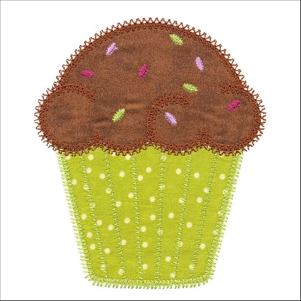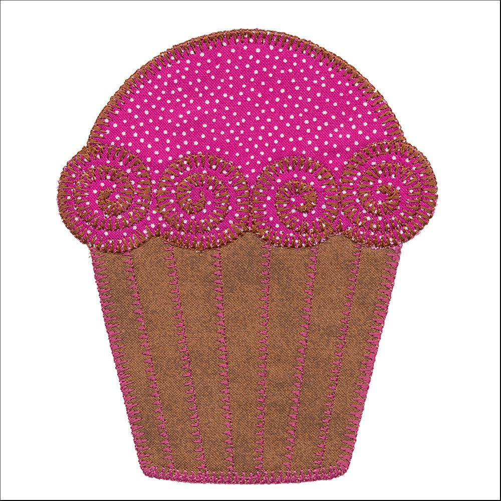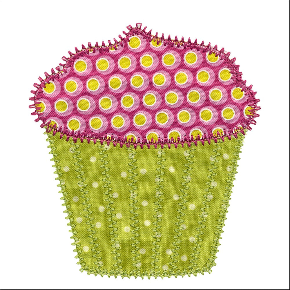 This machine appliqué design set is designed to be used with the AccuQuilt Go! Cupcake die (55097).
