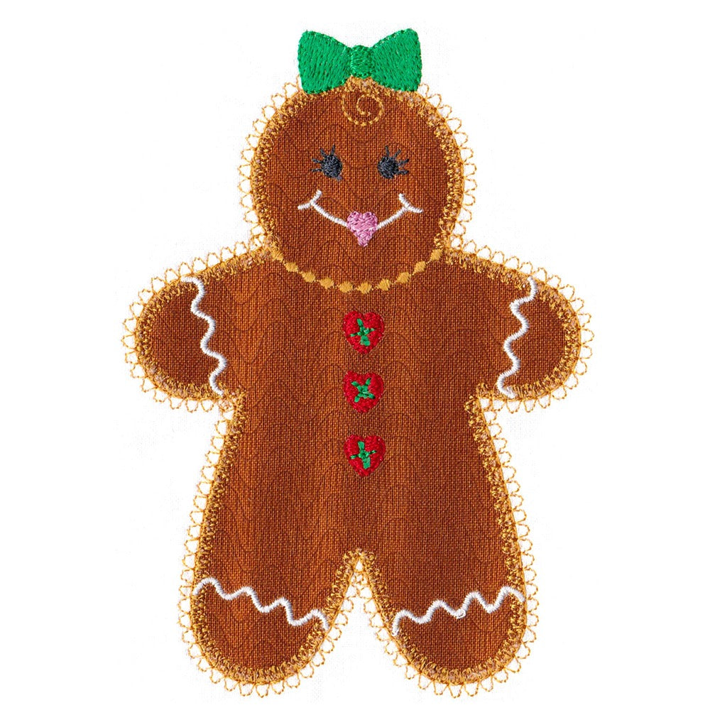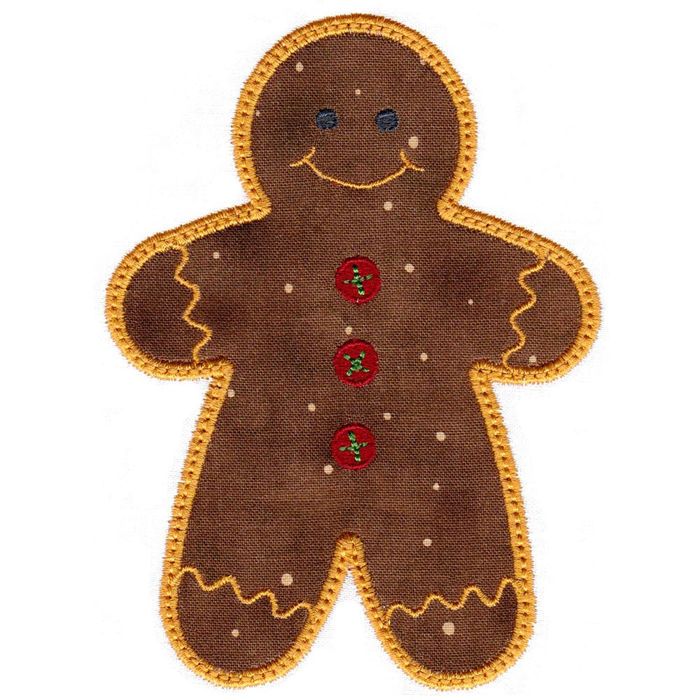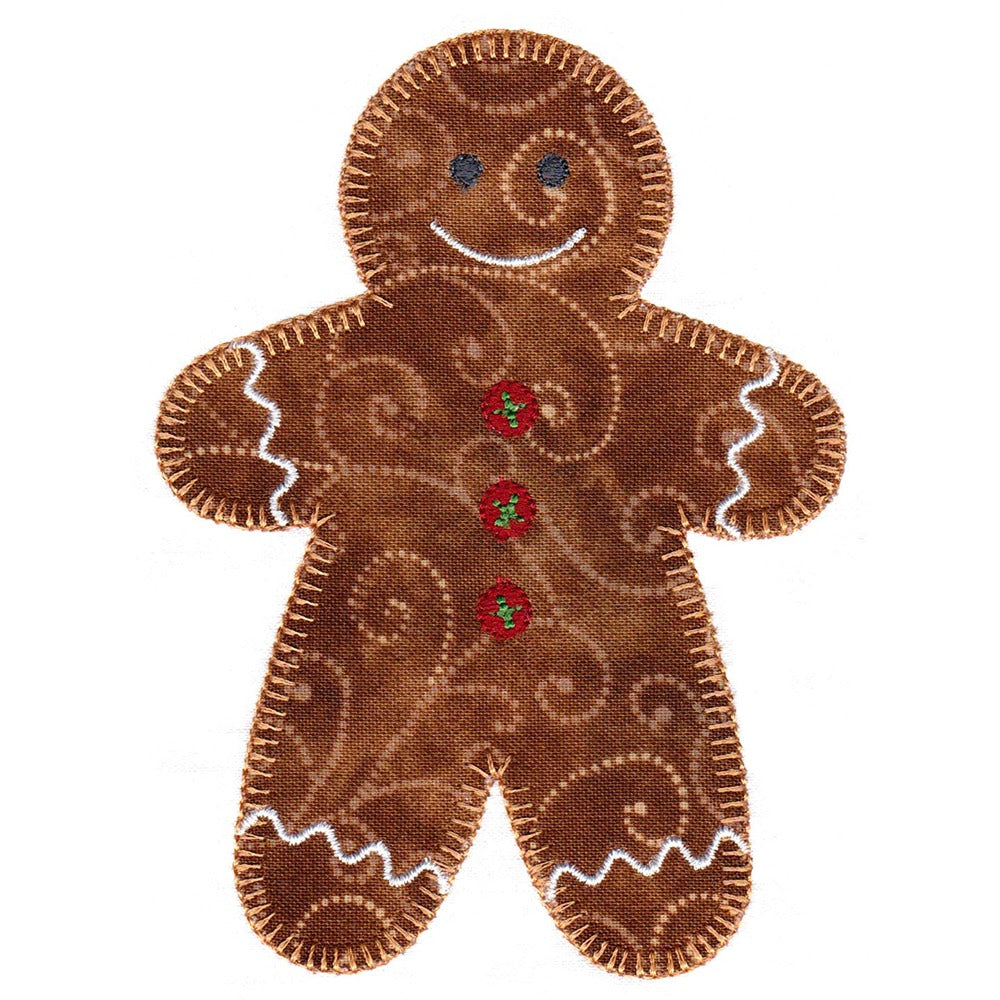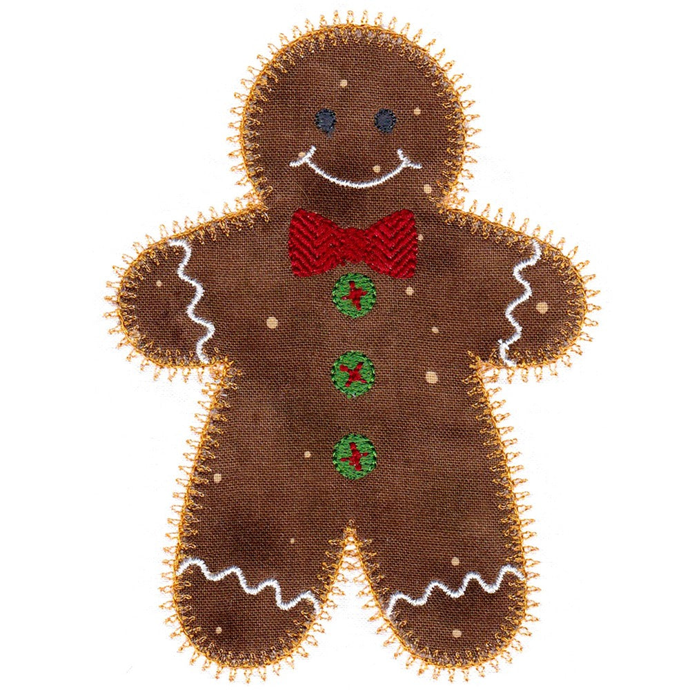 This machine embroidery appliqué set is designed to be used with the AccuQuilt Go! Gingerbread Cookie die (55862).