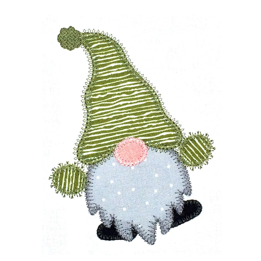 We wanted a short gnome so we decided not to use the body when creating this set. There are 5 different applique edges. You get a blanket stitch, a satin stitch and 3 different motif applique edges.