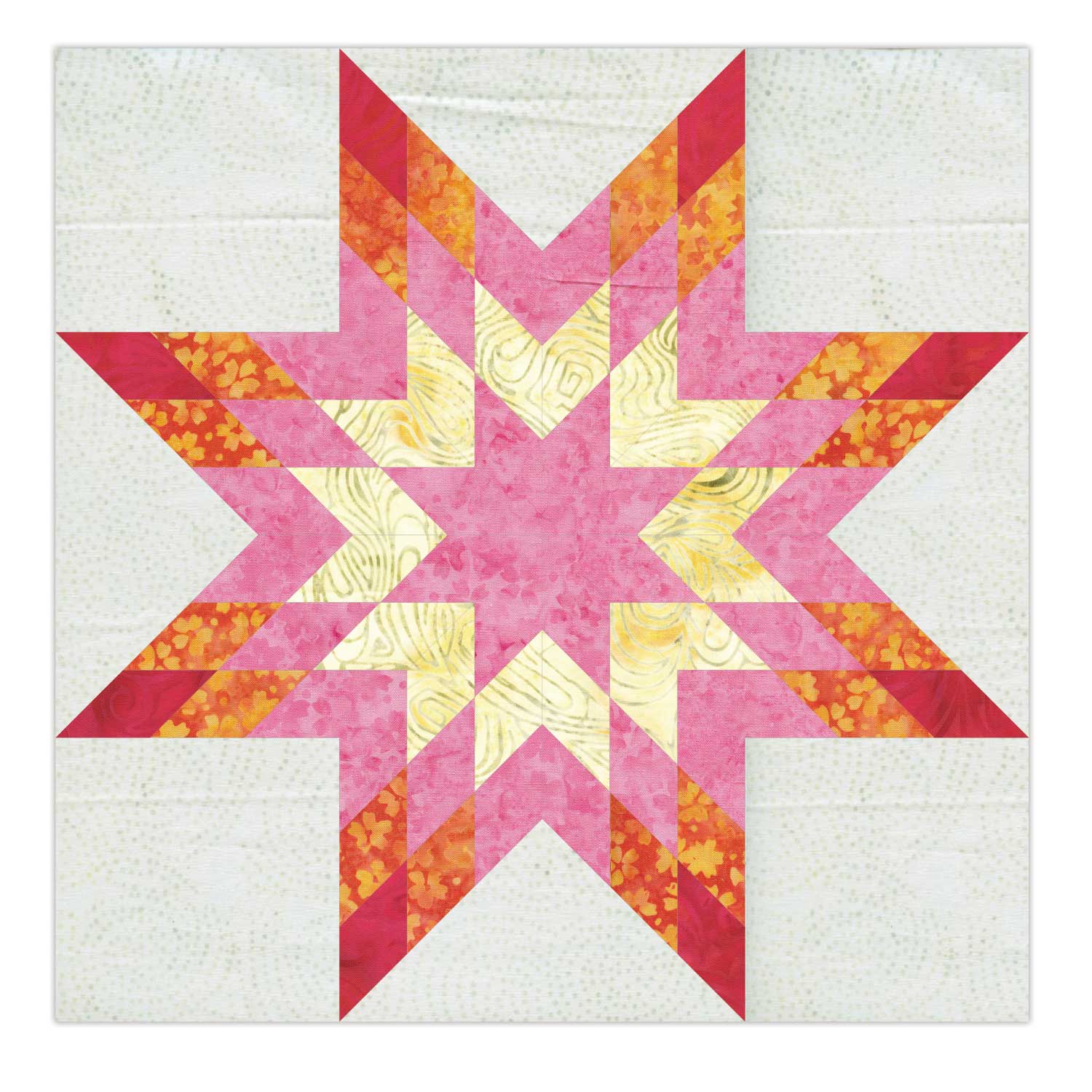 Hours of tedious cutting are reduced to seconds as the die cuts all the pieces for a stunning 5 colour, 14” finished block in just one pass through a GO! or GO! Big Fabric Cutter.