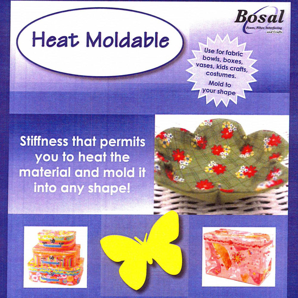 Stiffness permits you to heat the material and mould it into any shape. Use for fabric bowls, boxes, vases, kids crafts and costumes.