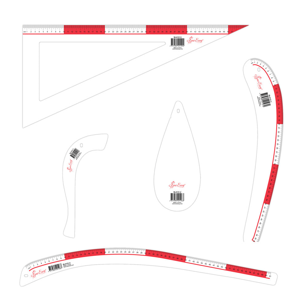 The Sew Easy Tailors Rule Template Set is a complete and practical kit for drafting, adapting, and altering dressmaking patterns. Designed for accuracy and ease of use, these templates are made from durable yet flexible plastic, allowing them to follow curves smoothly while maintaining precise measurement.