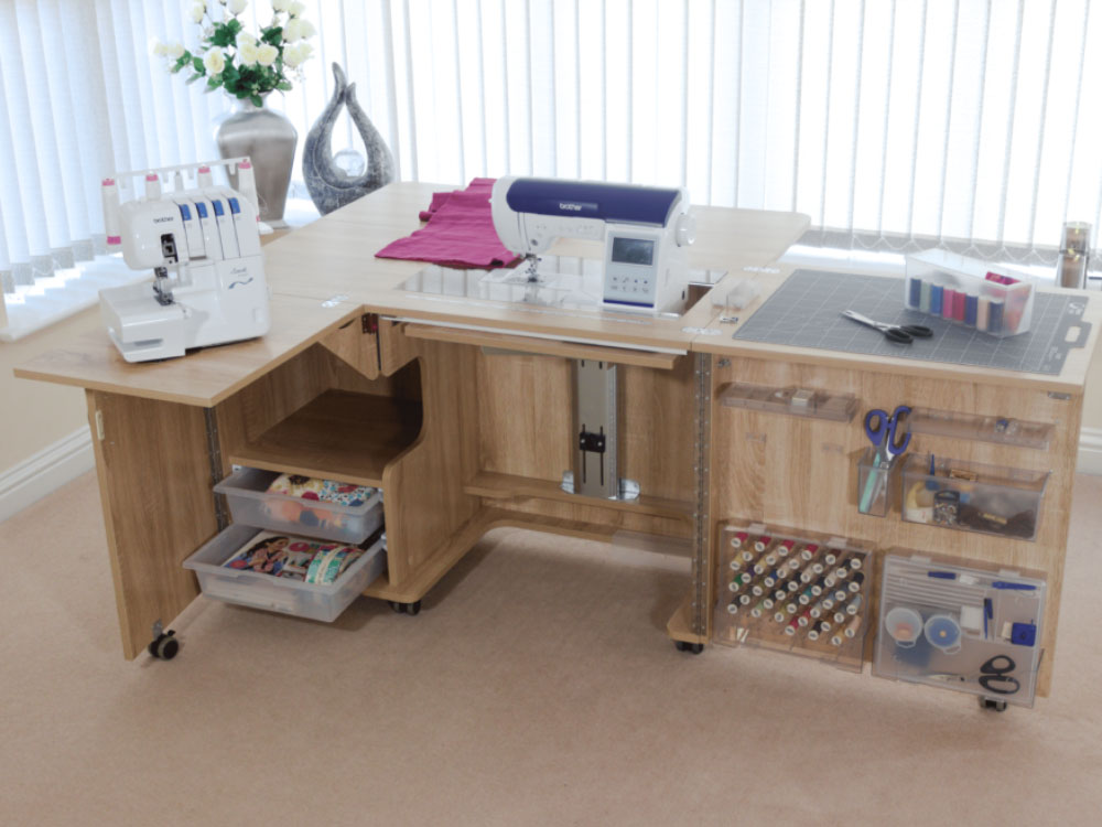 Ergonomically correct, you can sew for longer without the aches and pains that can be caused by sewing in a compromised position. When set into the 'flatbed option', quilting or sewing larger pieces with your machine becomes so much easier.