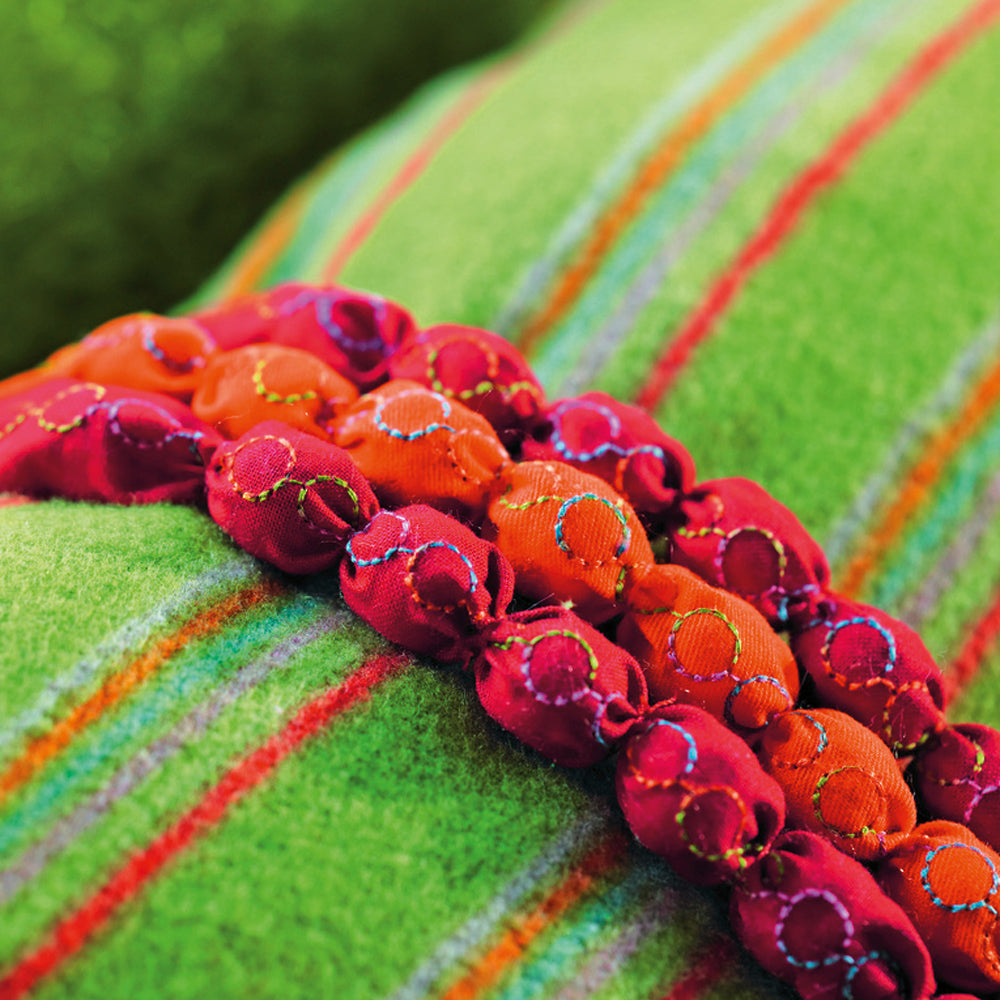 Reverse-pattern foot with clear sole #34 affords a clear view of the needle and stitching area. The red markings on the top of the presser foot allow for especially precise and careful sewing.