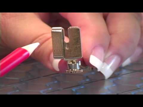 This foot is ideally suited for fine uncorded piping on medium to heavy-weight fabrics. A ridge in the sole of the foot under the left edge provides a guide for the piping edge.