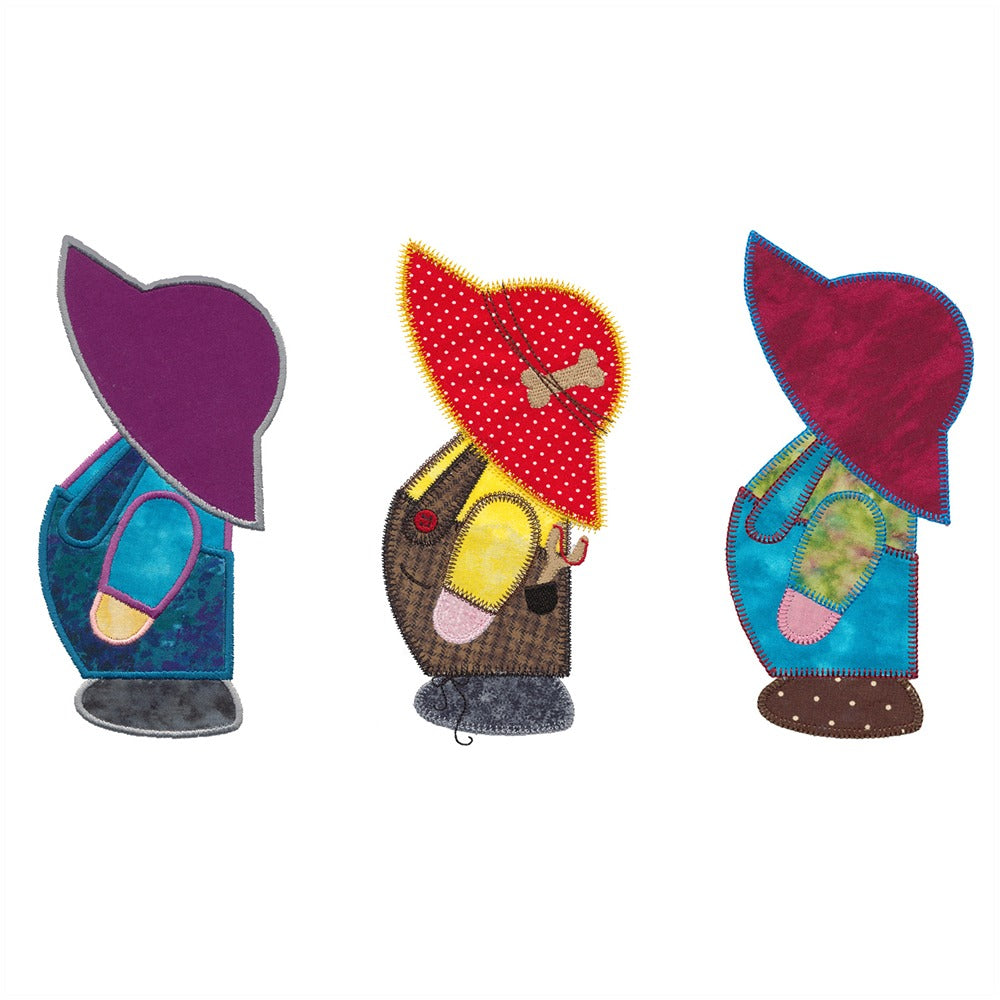 You get 3 designs in this set. There are 3 different applique edges to choose from. A blanket stitch, a satin stitch and a decorative motif applique edge.