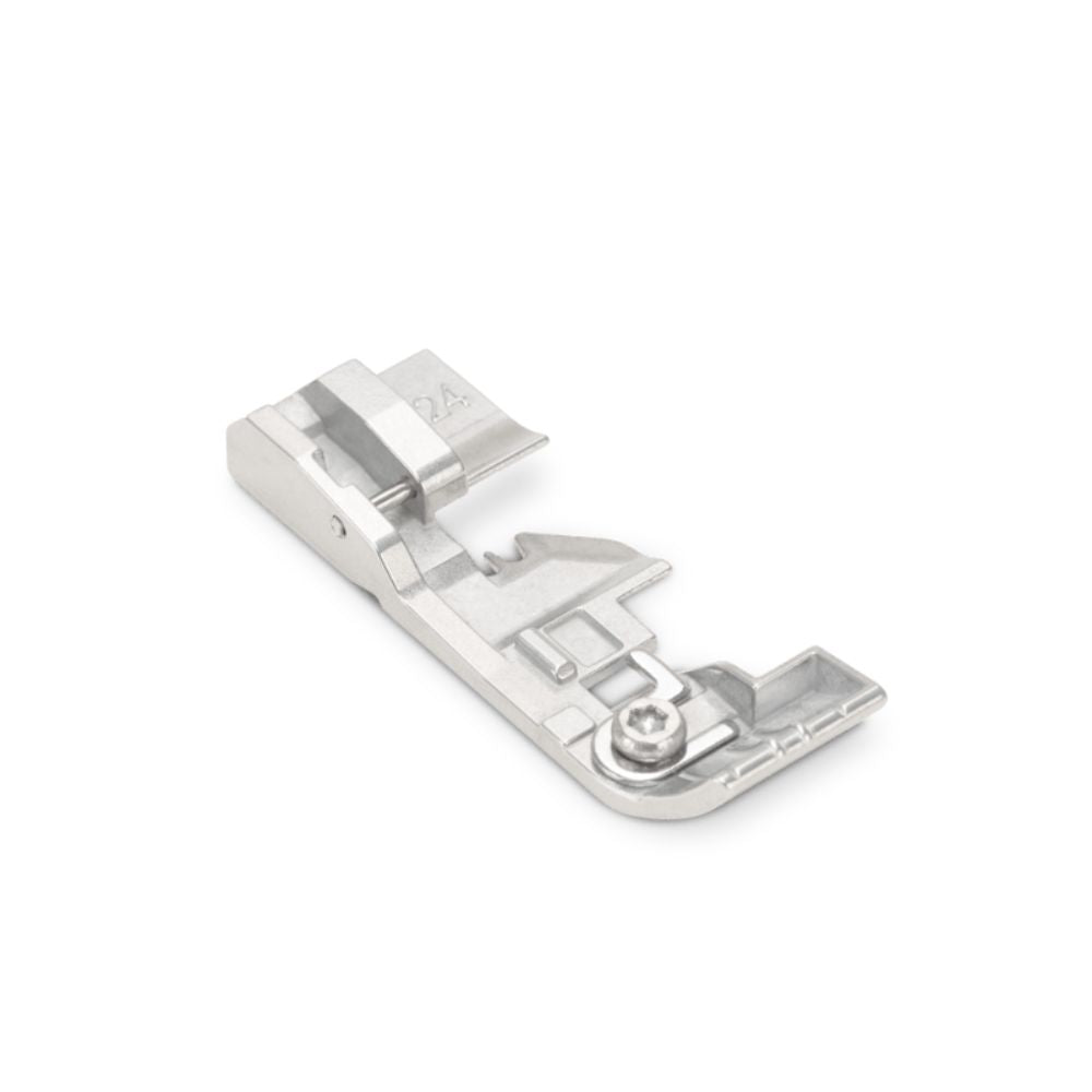 The Shirring Foot L24 is perfect for gathering lightweight, soft, single-layer fabrics. Its tape guide allows sewing on tapes up to 12 mm in width. The presser foot is suitable for all overlock stitches.