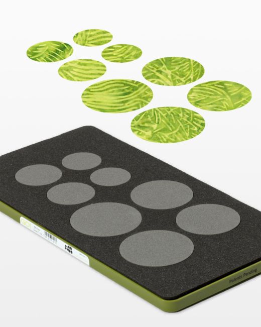 This die cuts four circle sizes, making it ideal for appliqué quilts, penny rugs, modern designs, and decorative accents. For easy appliqué, apply fusible web to the wrong side of the fabric before cutting so the shapes are ready to fuse and stitch straight away.