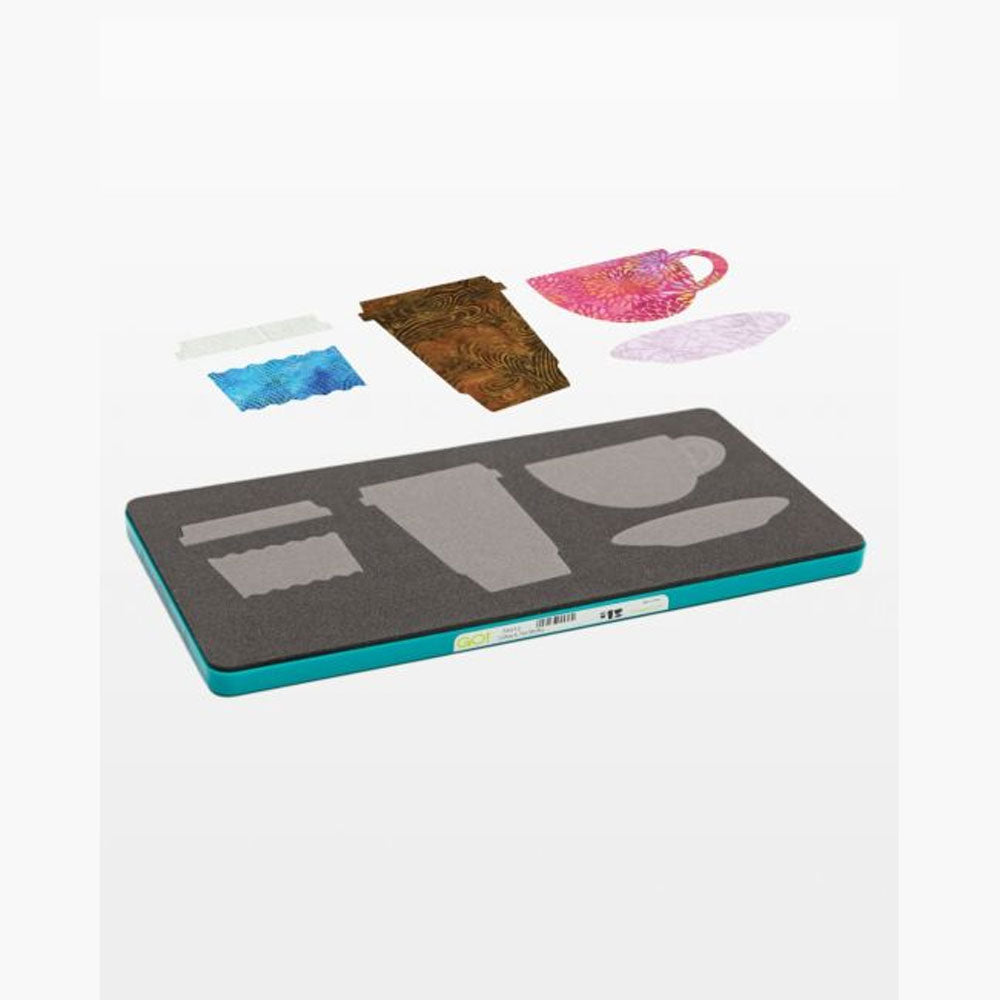 Coffee & tea go hand-in-hand with quilting! So this die is perfect for coffee and tea lovers alike. We are sure you will find dozens of creative uses for the charming shapes on this special limited edition die in a collectable teal-coloured tray.