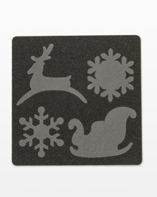 The die cuts two distinct snowflakes, a reindeer, and a sleigh, all with clean, precise edges, thanks to ultra-sharp yet safe blades. These shapes are ideal for appliqué quilts, clothing, gift tags, home décor, holiday gifts, and decorative seasonal projects.