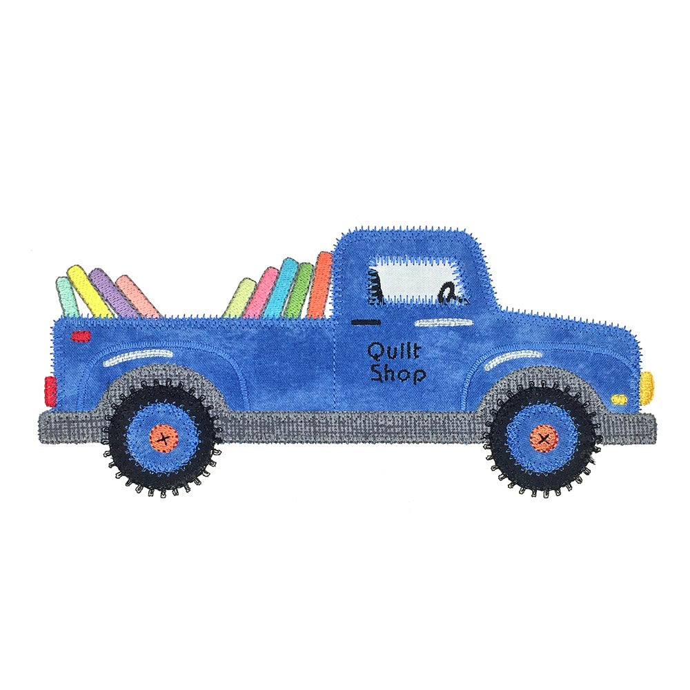 The Quilt Shop Pickup appliqué embroidery design is designed to be used with the Accuquilt GO! Pickup Truck die (55187).