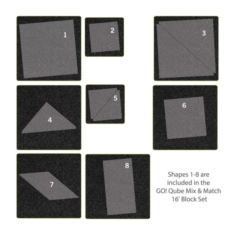 - (8) GO! Mix & Match 6" x 6" & 10" x 10" Dies (with quilt shape number):