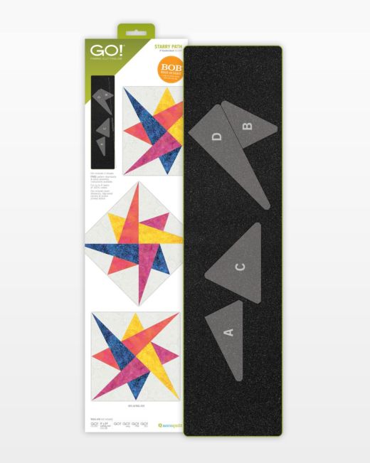 Accuquilt GO! Starry Path is a Block on Board® (BOB®) die which means it is specially designed to cut one 3-colour, 9" block in one pass through the cutter.