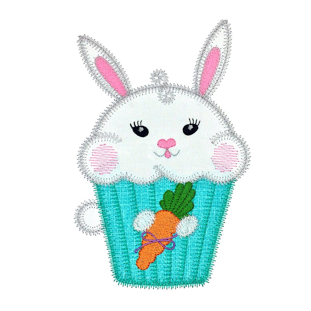 Another great cupcake design. This one is an adorable bunny. This design was created with a variety of decorative motif applique edges and fun embellishments.