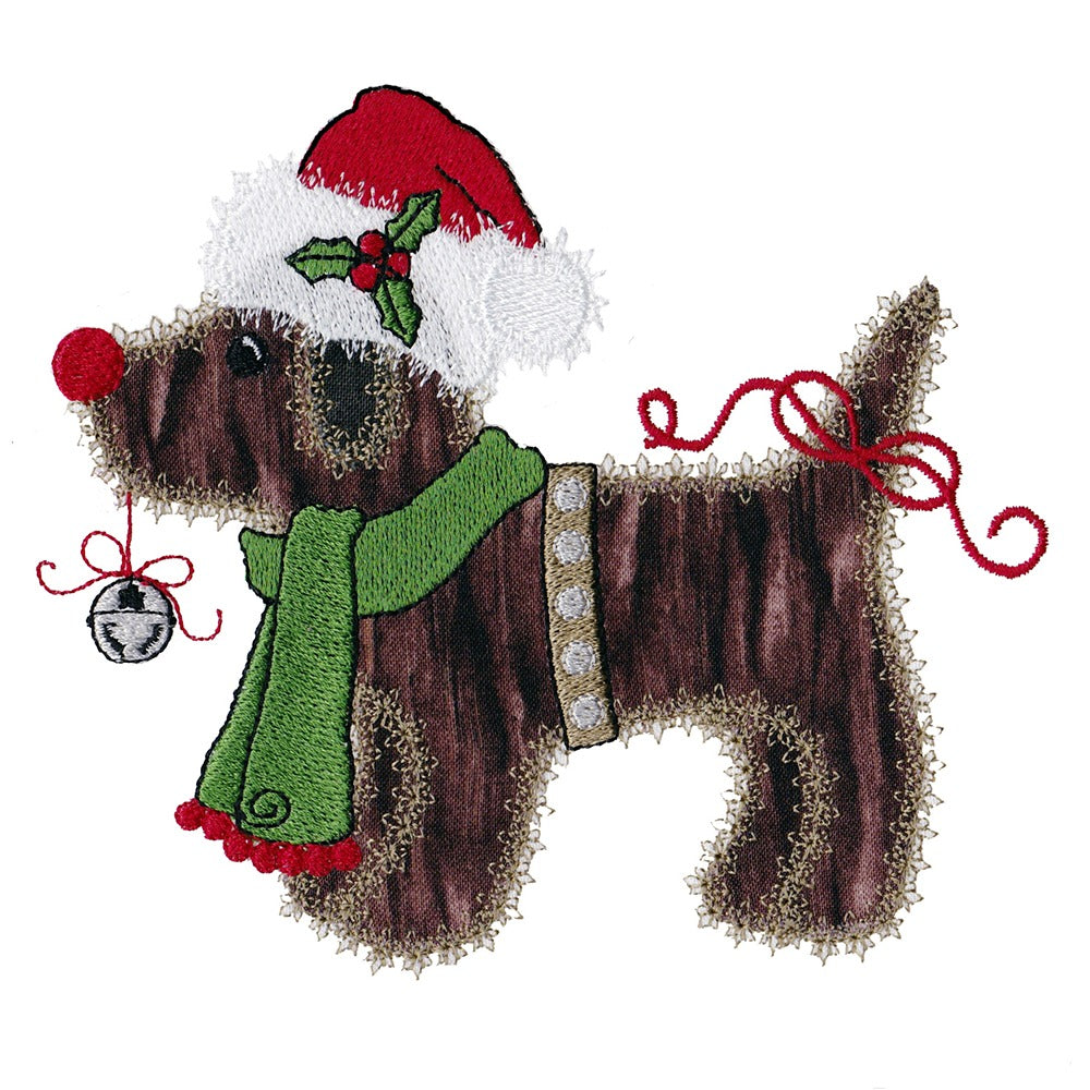 Our dog has his hat and scarf on and is ready for Christmas. This design was created using a variety of decorative motif applique edges.