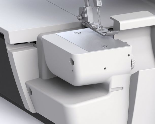 The 130 mm space right of the needle gives overlocking another dimension. The large working area is ideal for leading and catching heavy sewing projects behind the needle. It gives you the space for all tasks in the needle and looper area: changing the presser foot, attaching the upper looper converter and much more.