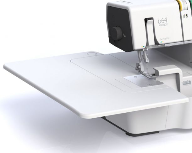 The overlocker with an air threader to automatically thread the loopers. It‘s never been so easy to get started. The b64 AIRLOCK has even more to offer: the freearm makes it easy to sew sleeves and cuffs. You will love the large work surface to the right of the needle and the slide-on table. 5 LEDs ensure the working area is brightly lit. The presser foot can be lowered and temporarily raised using the bernette Free Hand System, so that your hands remain free to guide the fabric. With 16 different stitches to choose from and a sewing speed of up to 1300 stitches per minute, you will finish your project in no time!