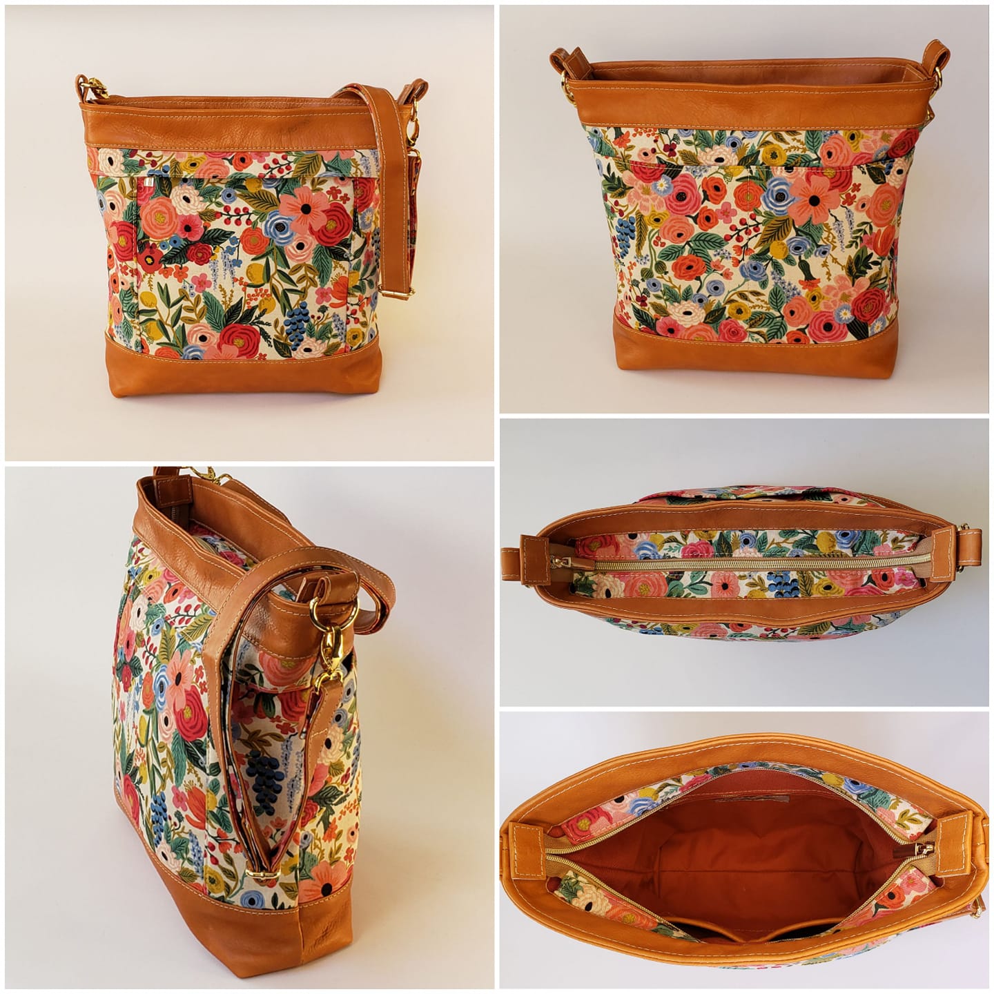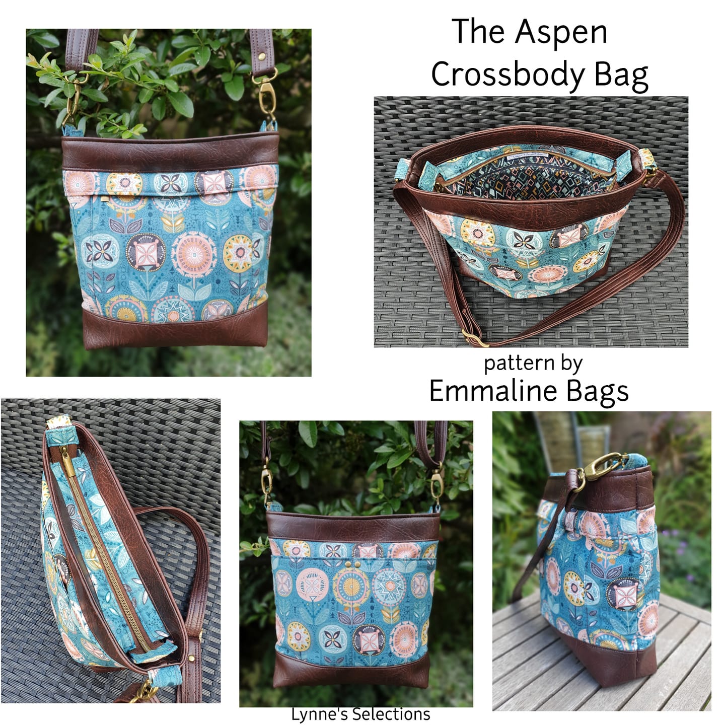 The Aspen Crossbody Bag can be made in 2 sizes and features 1 front zipper pocket and 2 convenient back slip pockets. It has a top zipper opening to keep all of your items safe inside. Inside is a double slip pocket and a zipper pocket for personal items. While this bag has a nice feel in your hand due to the added interfacing and fusible Thermolam Plus Fleece, it’s not a heavily structured bag but a casual crossbody bag.