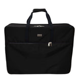 Manufactured from ballistic nylon and features a fibreglass frame to keep your embroidery stored safely at home and in transit. The bag has added pockets that will hold your embroidery module, hoops, fabric, and computer supplies and fills pockets with sewing notions to your heart's content. The black top board can be double used as a design wall, which is great for blocks. Carry individually with a handle or shoulder strap or stack on top of a Tutto Serger Sewing Machine Bag or Sewing Machine Bag as shown in the Red photo.