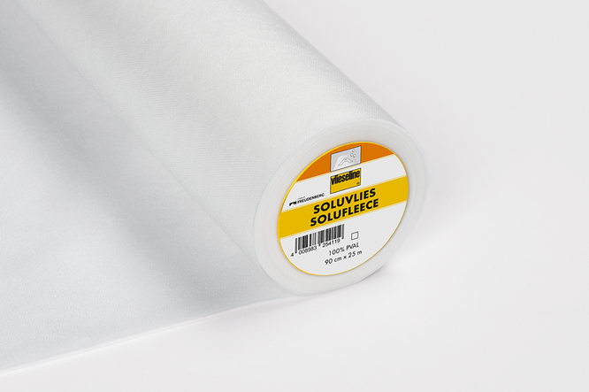 Vlieseline Solufleece is a sewable and water-soluble embroidery backing designed for machine embroidery, creative textile techniques and mini-quilts. It offers gentle stability while stitching and then dissolves completely in water, leaving only the finished embroidery or textile structure. Suitable for all washable fabrics and for any project requiring a temporary stabilising layer.
