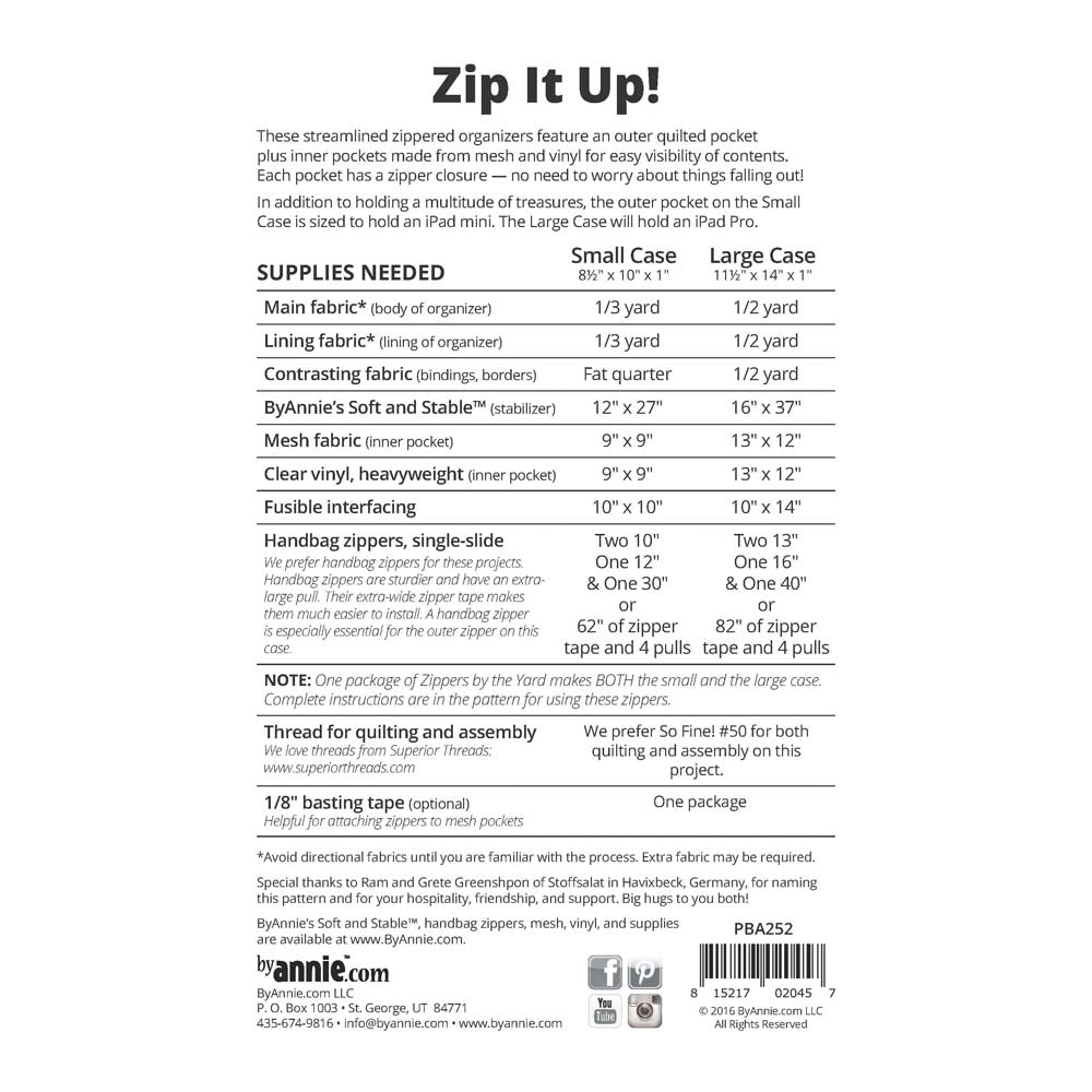 - ByAnnie Zip It Up Pattern