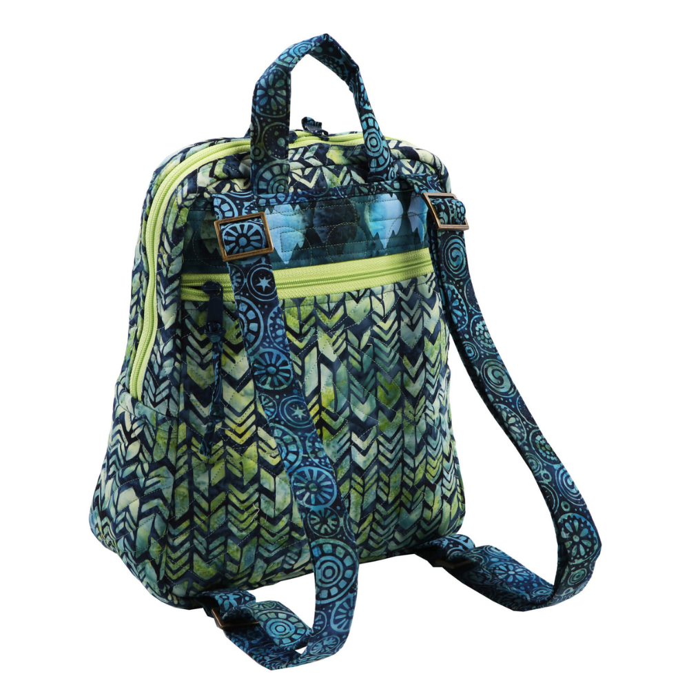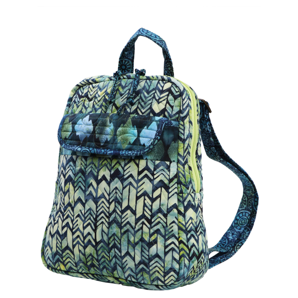 The front includes a magnetic flap pocket for quick access, while the back has a fully zippered quilted pocket to keep essentials secure. Inside, a zippered mesh pocket and several slip pockets provide organised storage for items such as a phone, keys, cards, and identification.