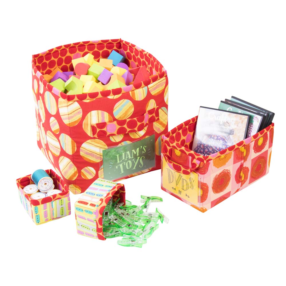 Make these soft-sided fabric bins in your favourite fabrics and colours to organise and store your treasures.