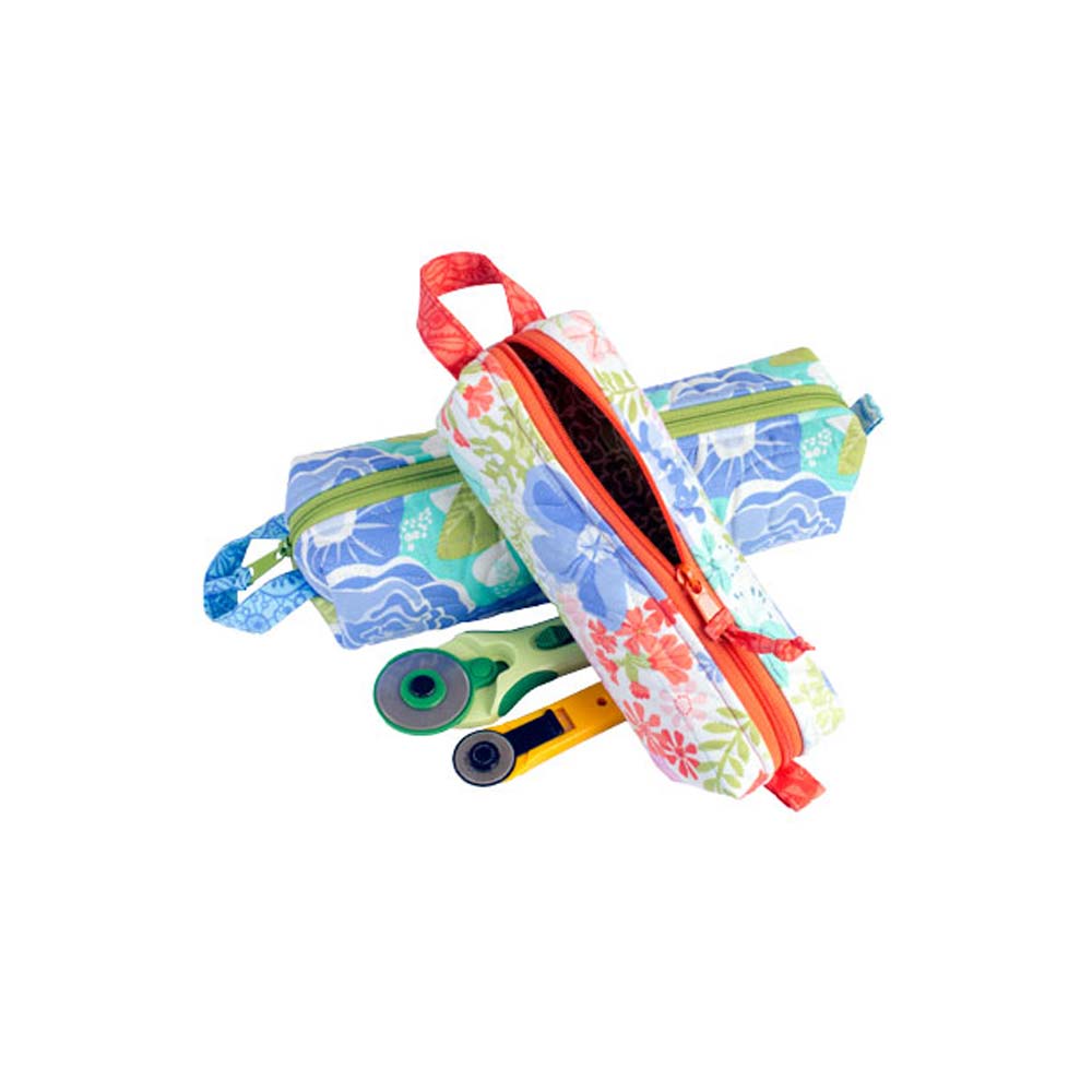 Quick and easy to make, these handy little zippered cases are perfect for storing and carrying quilting supplies, art supplies, knitting needles, crochet hooks, and lots more. The small case is perfect for rotary cutters, chalk markers, scissors, and more.