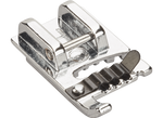 If you want to couch one or several threads or fine cords on your project this foot keeps everything parallel for you. Use decorative stitches with contrasting or complementary colours for extra depth.