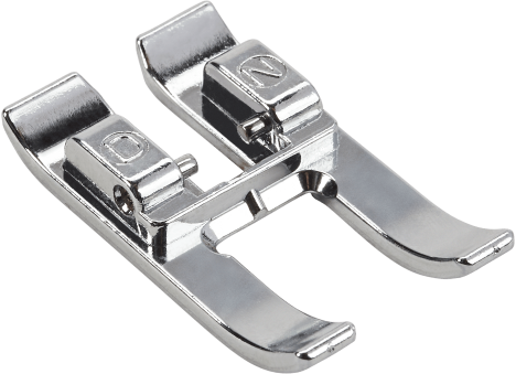 The Open embroidery foot for Dual Feed is provided with a recess on the backside of the presser foot to activate the integrated Dual Feed.  This allows an even feed of several layers when using decorative stitching.
