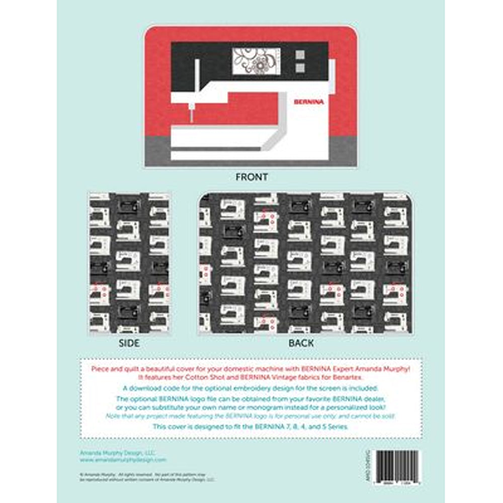 This custom machine cover is designed to fit the BERNINA 8 7 5 and 4 Series machines. Its pieced design mimics the beauty of the machine inside! The fabric used is from Amanda Murphy's Bernina Vintage fabric.