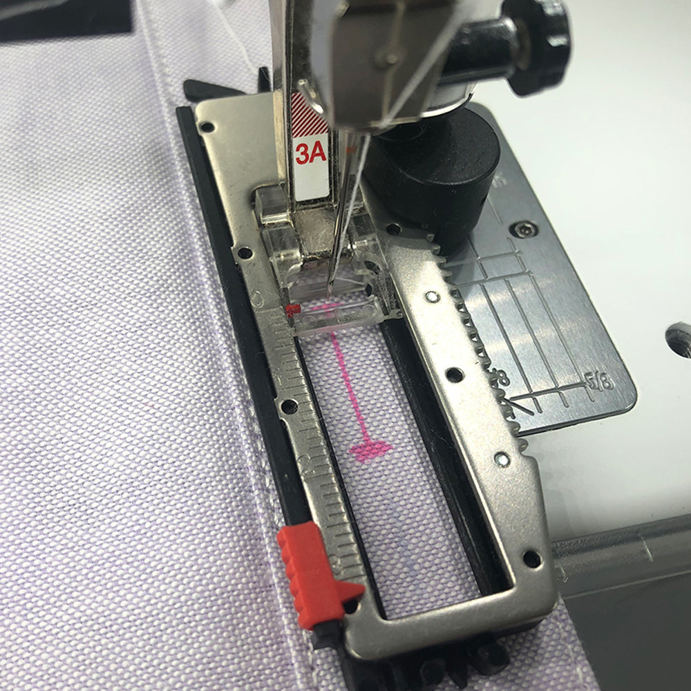 Buttonhole foot with slide #3A makes it a cinch to sew buttonholes of the same length. You can then sew as many buttonholes of the exact same length as you want, in next to no time.