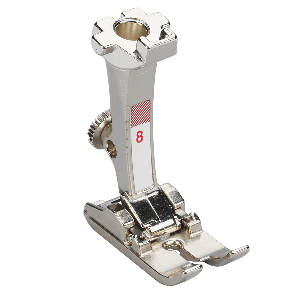 Jeans foot #8 is especially suited for sewing straight-stitched seams in tough, heavy fabrics such as denim, linen or canvas. Multi-layered fabrics also benefit from their special design.