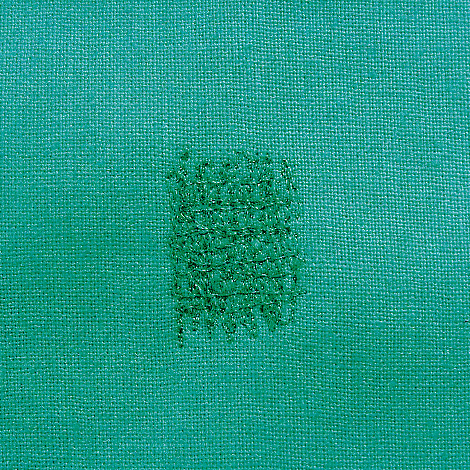 Secured by a non-slip ring, the material is ready to be stitched on with a darning foot #9. The Hosiery darning hoop prevents puckers or wrinkles in the fabric, facilitating expert repair of the damaged area.