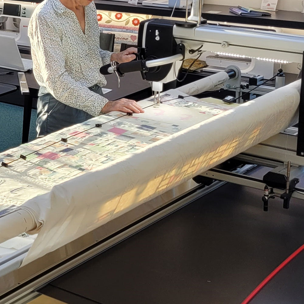 Are you struggling to finish your quilt on a domestic machine? Our Bernina Q series machines are here to help! Bring your quilt to our beautiful studio near Dartmoor and rent one of our Bernina Longarm machines by the hour. With our zippered leaders, unloading and reloading your quilt on a frame will be quick and easy. Remember to bring proof of your Longarm Certification or complete the certification on the day. (Book separately)