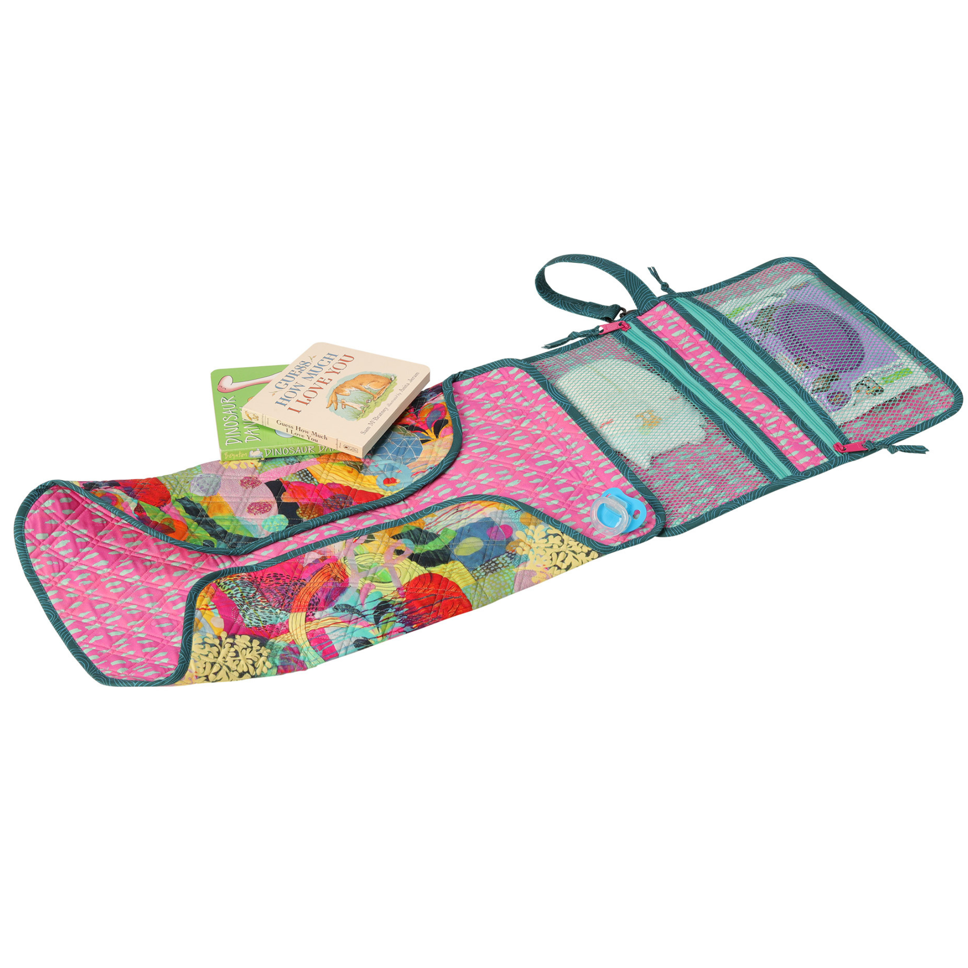 This compact kit is perfect for changing your baby on the go. The attractive wallet-style clutch unfolds into a large, padded changing pad with plenty of pockets to store all the essentials. Two large zippered mesh pockets hold several diapers, baby wipes, and even small toys to keep the baby entertained. An outer zippered pocket holds personal items, and a handy flap closes the folded clutch keeping everything contained. The extra-large baby changing pad is fully padded to comfort your little one. The pad removes for easy laundering or to allow the clutch to be used separately.