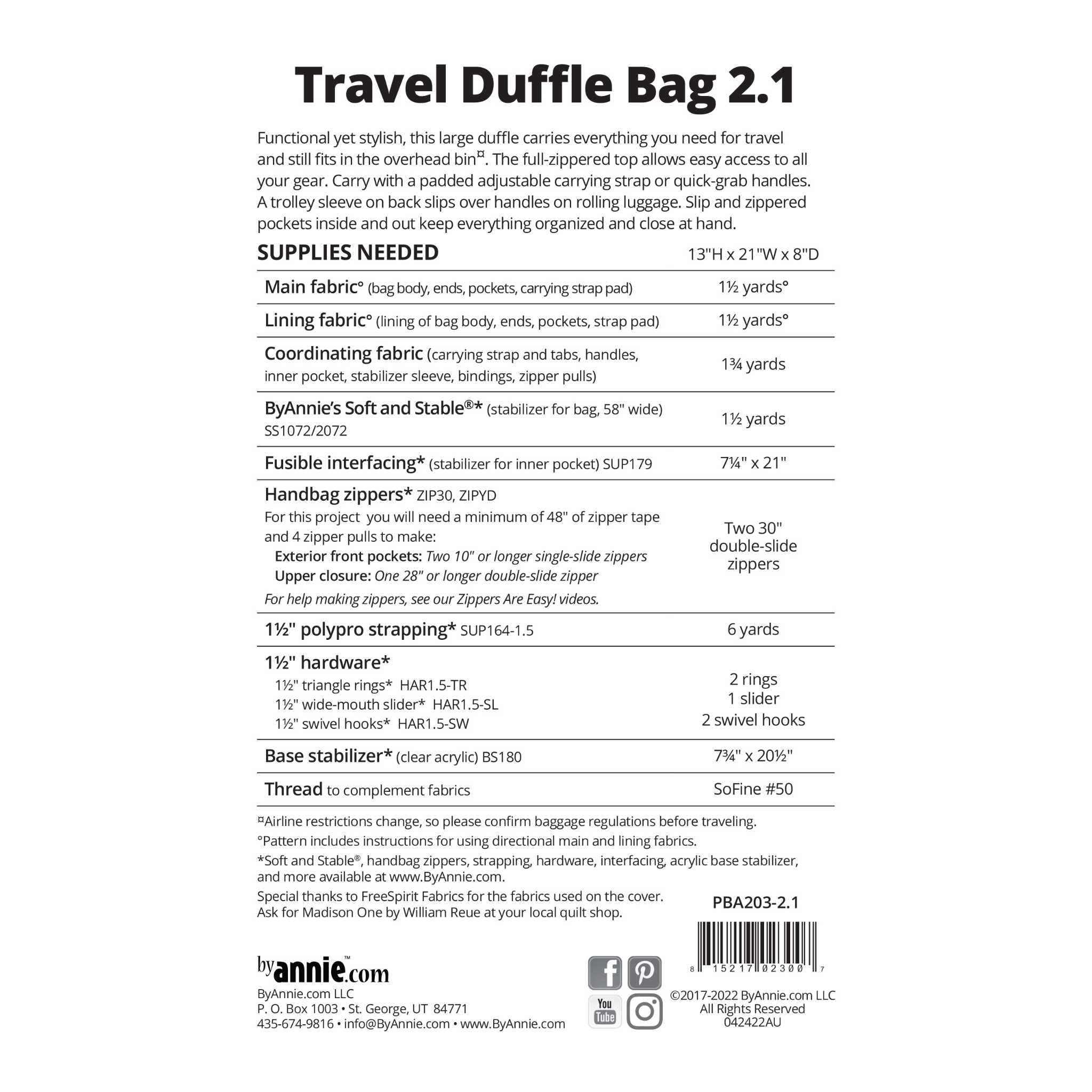 - ByAnnie Travel Duffle Bag 2.1 Pattern