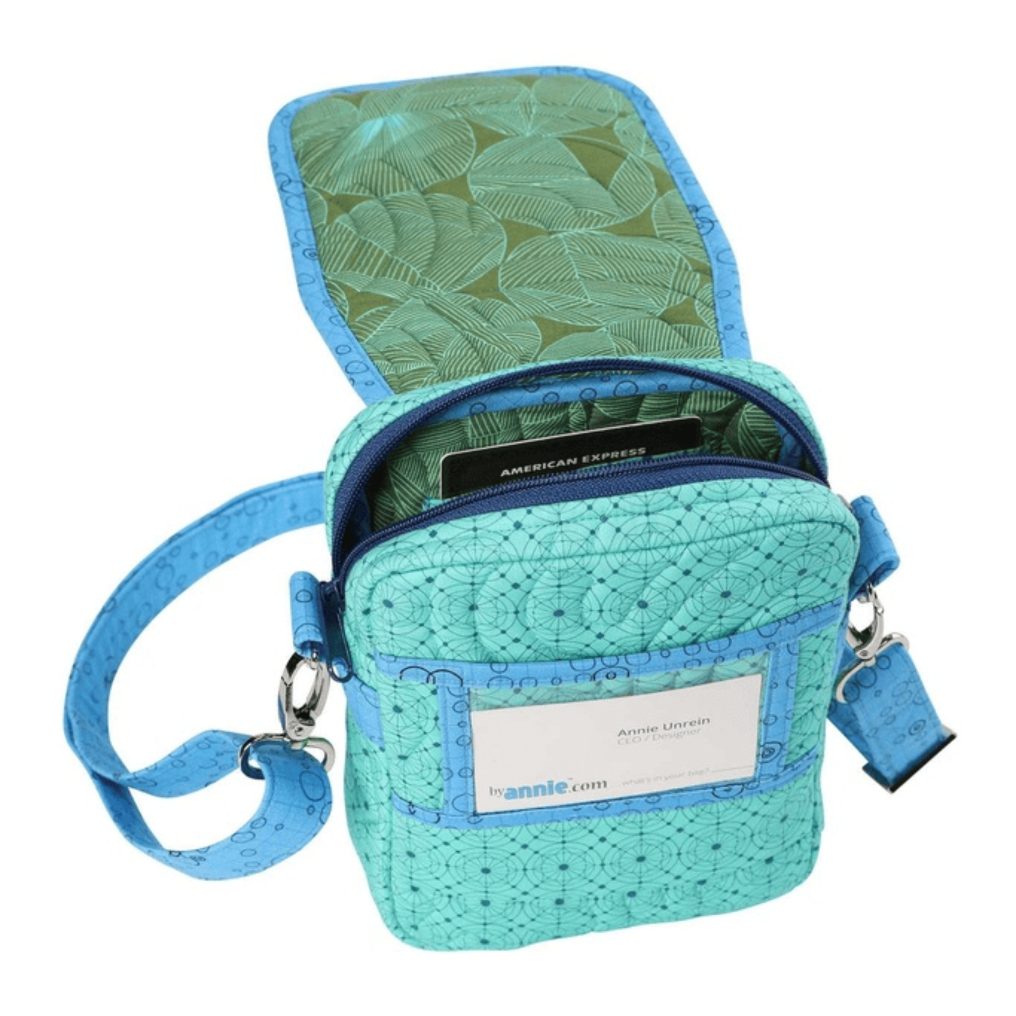 The interior compartment features three credit card slots and ample space for an e-reader, small wallet, and other must-haves.