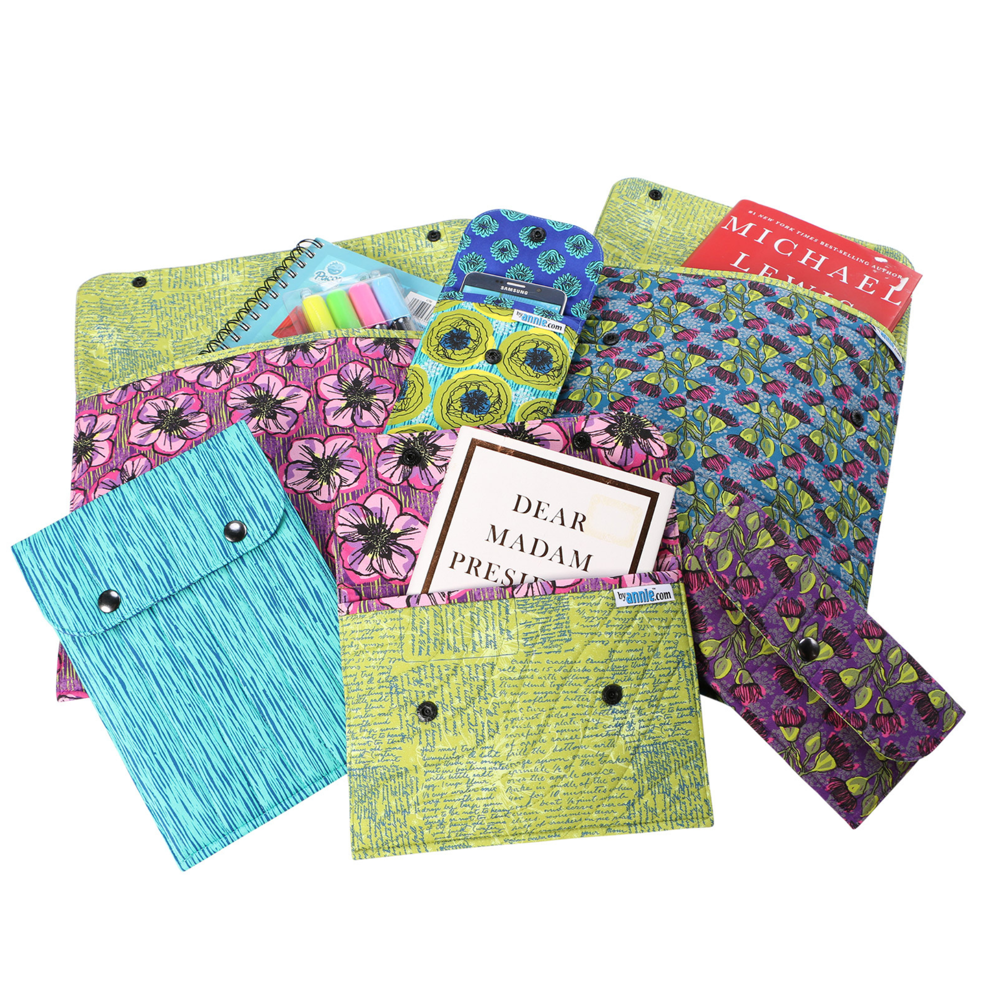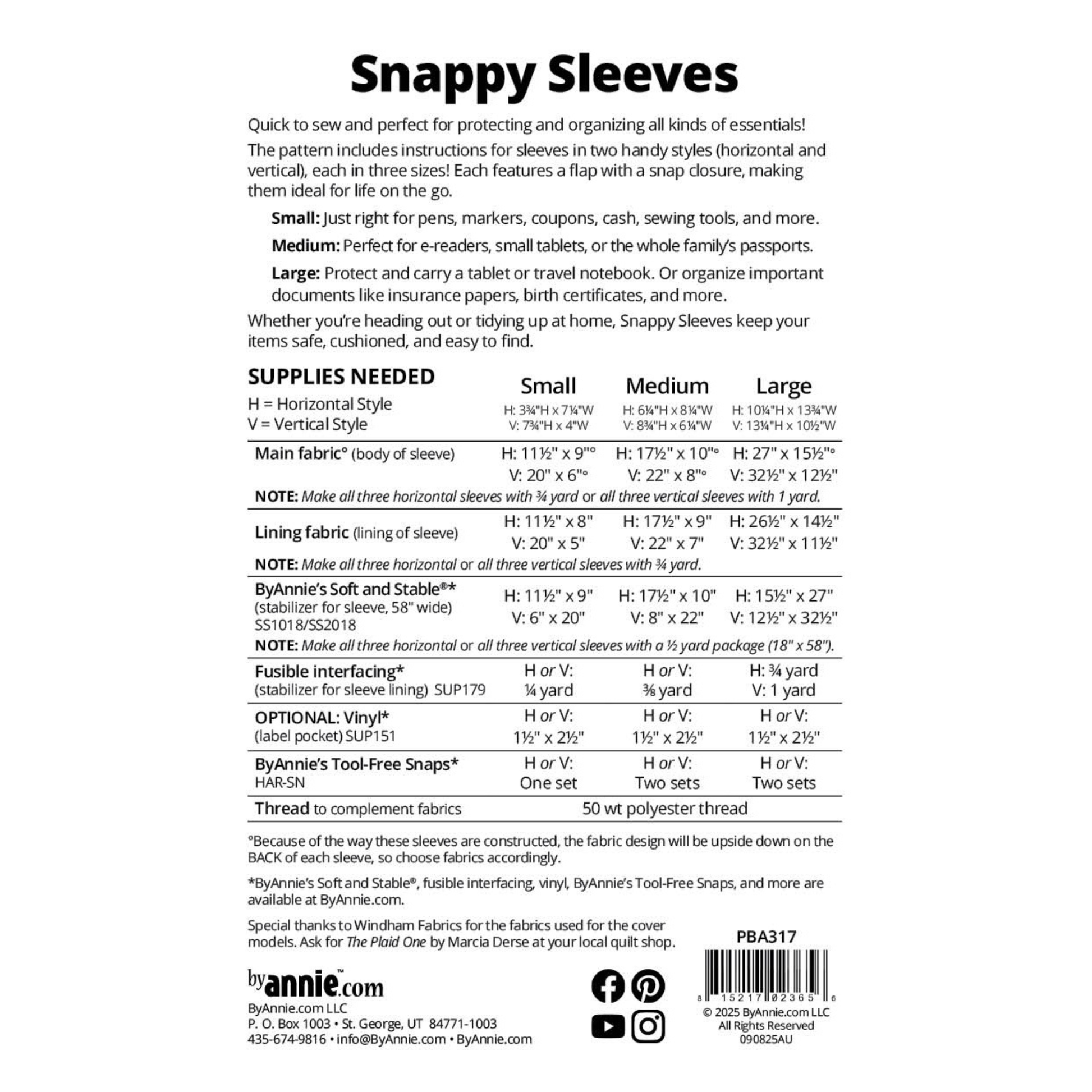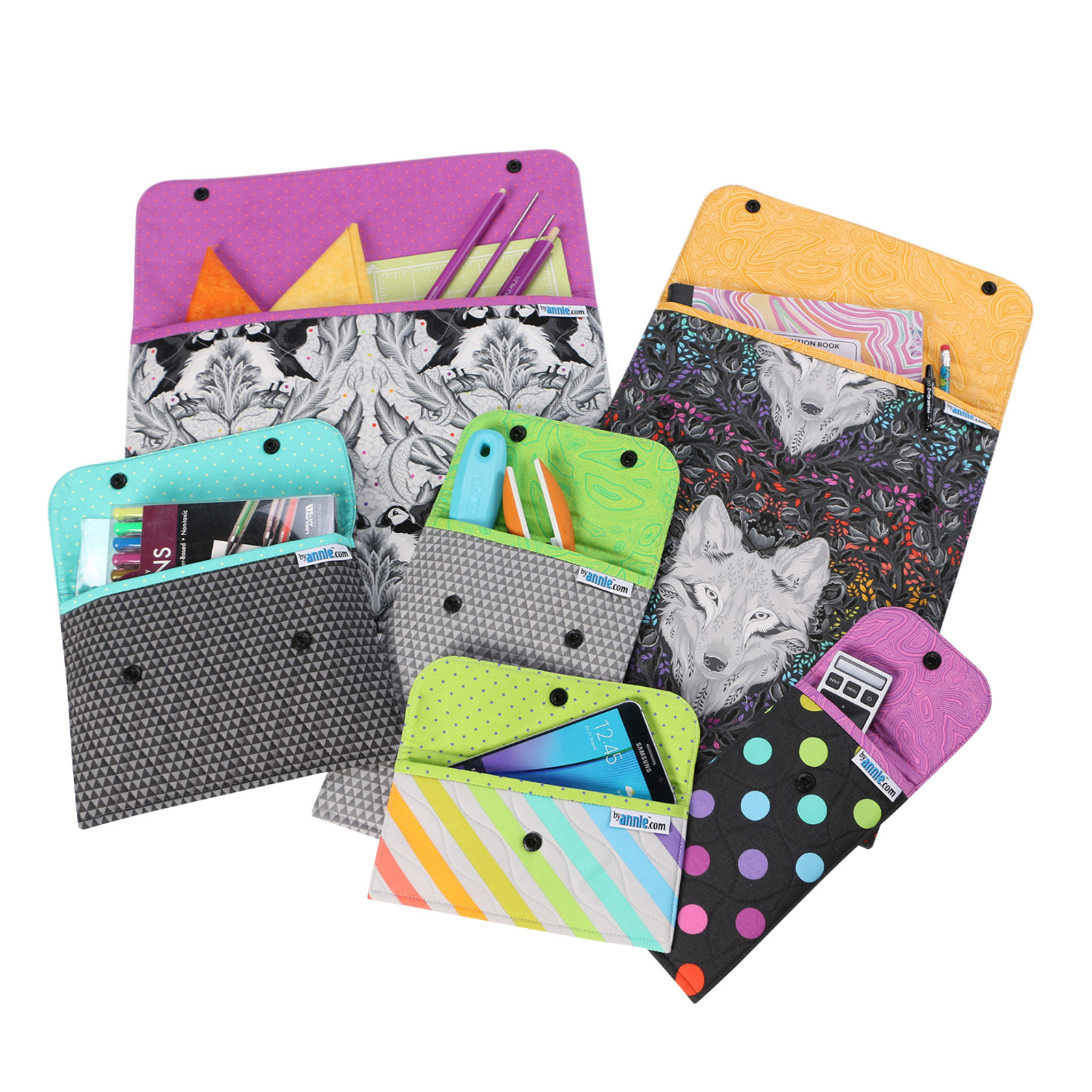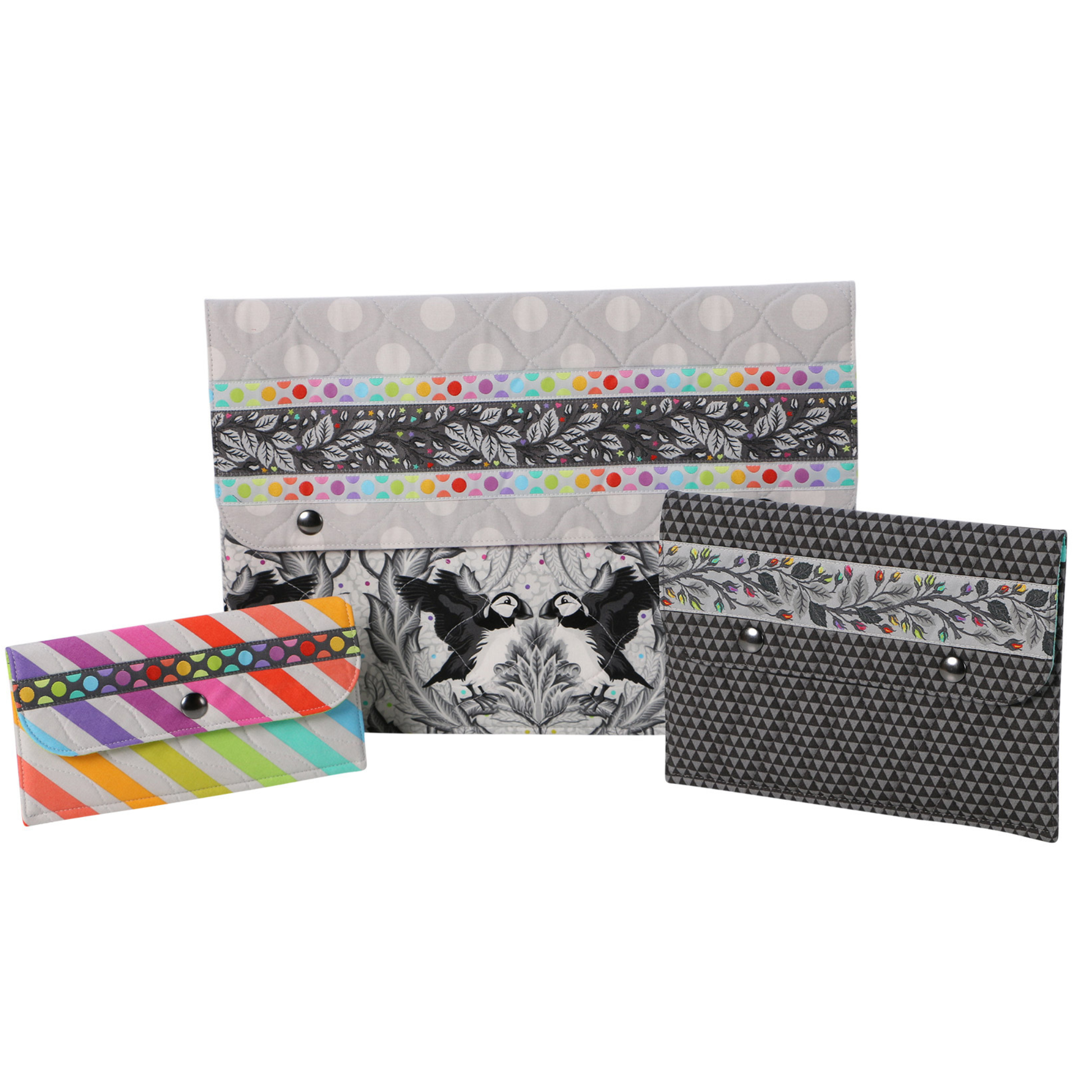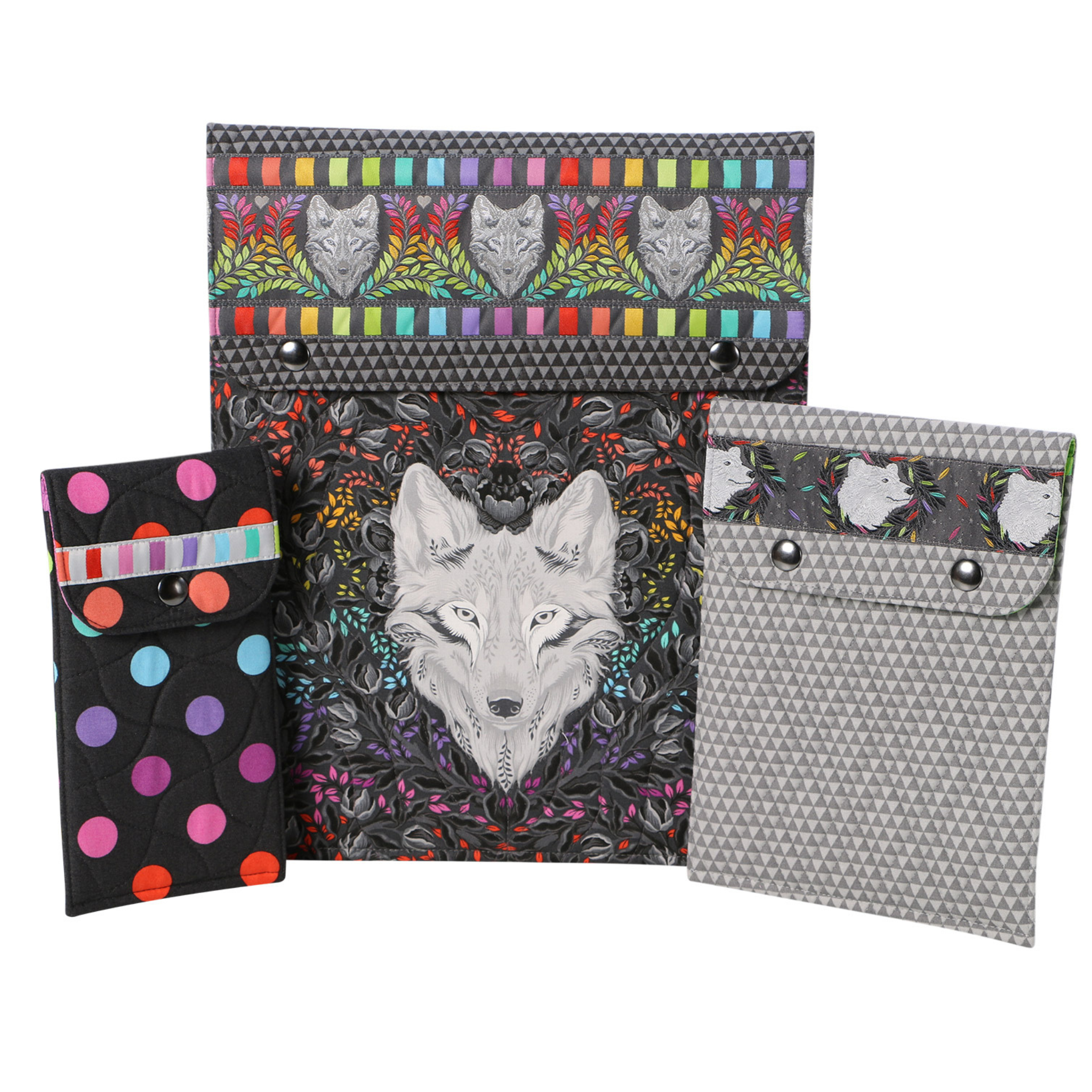 The pattern includes instructions for sleeves in two handy styles (horizontal and vertical), each in three sizes! Each features a flap with a snap closure, making them ideal for life on the go.
