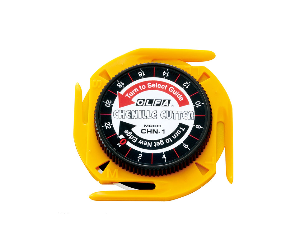 The Olfa CHN 1 Chenille Cutter is a purpose-designed tool for creating chenille fabric with precision and consistency. Its unique construction allows you to cut controlled channels through layered fabric, producing even chenille strips without scissors.