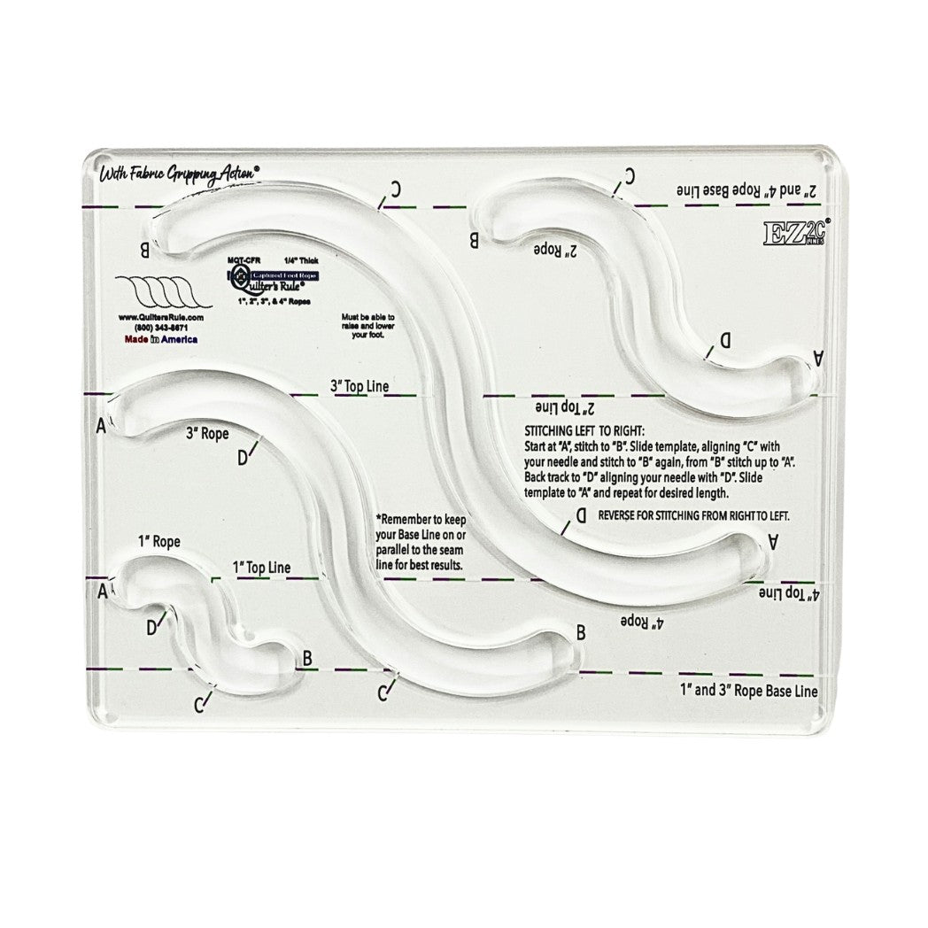 The Quilter's Rule Captured Foot Rope template set is designed to help you create beautiful continuous line rope designs with ease. This innovative tool uses a simple letter-following process, with instructions written directly on the template, making it perfect for both beginners and experienced quilters.