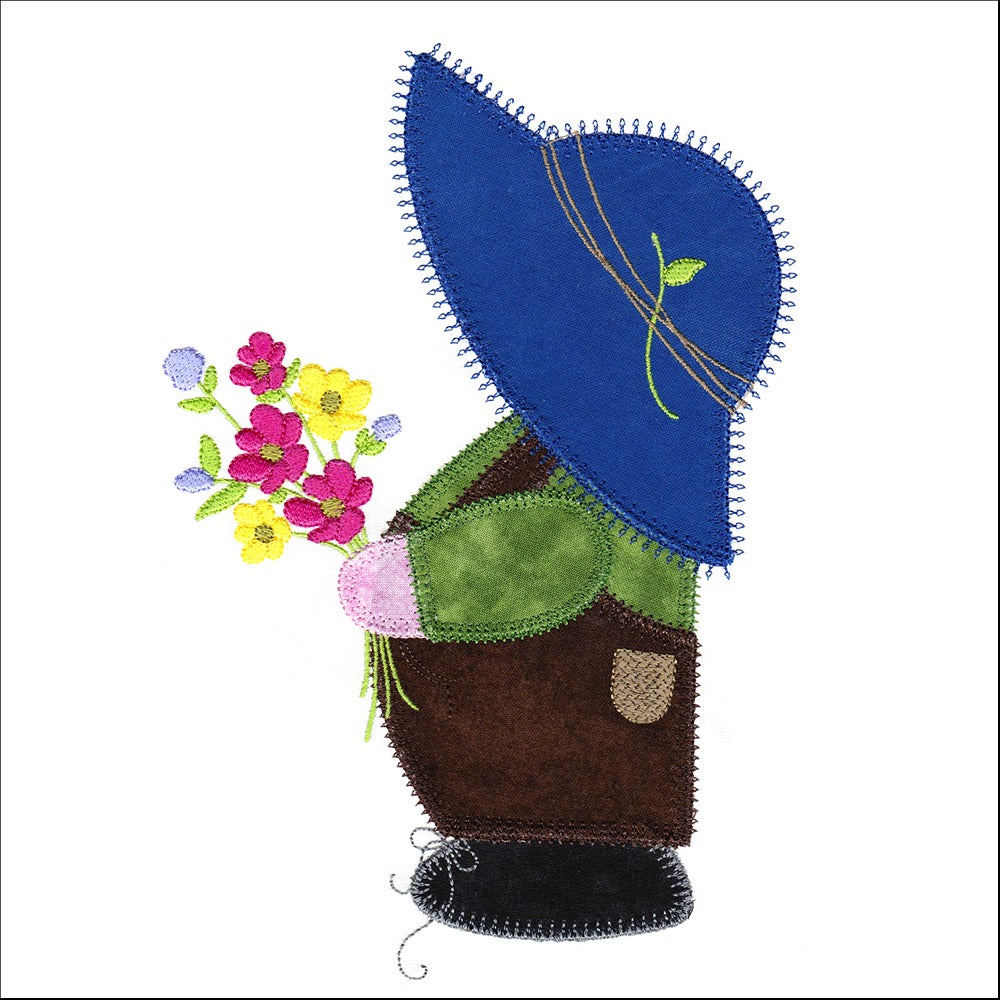 Sam has his bouquet of flowers. He was created using a variety of decorative motif applique edges.