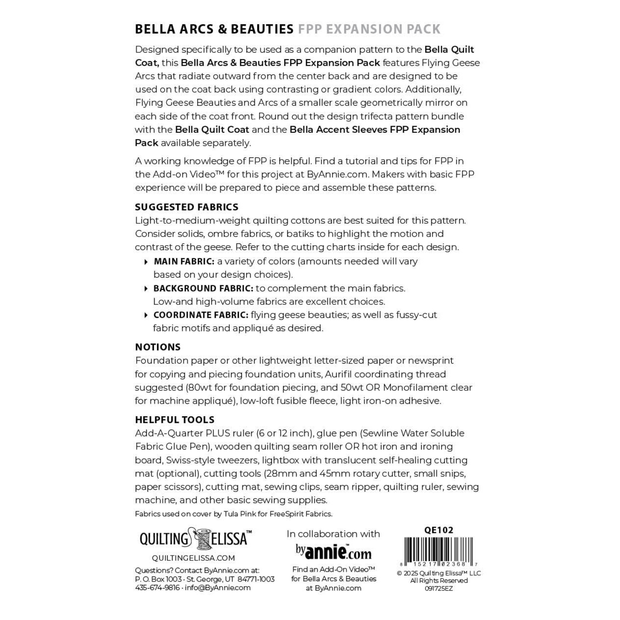This Bella Arcs & Beauties FPP Expansion Pack is designed specifically to be used as a companion pattern to the Bella Quilted Coat.