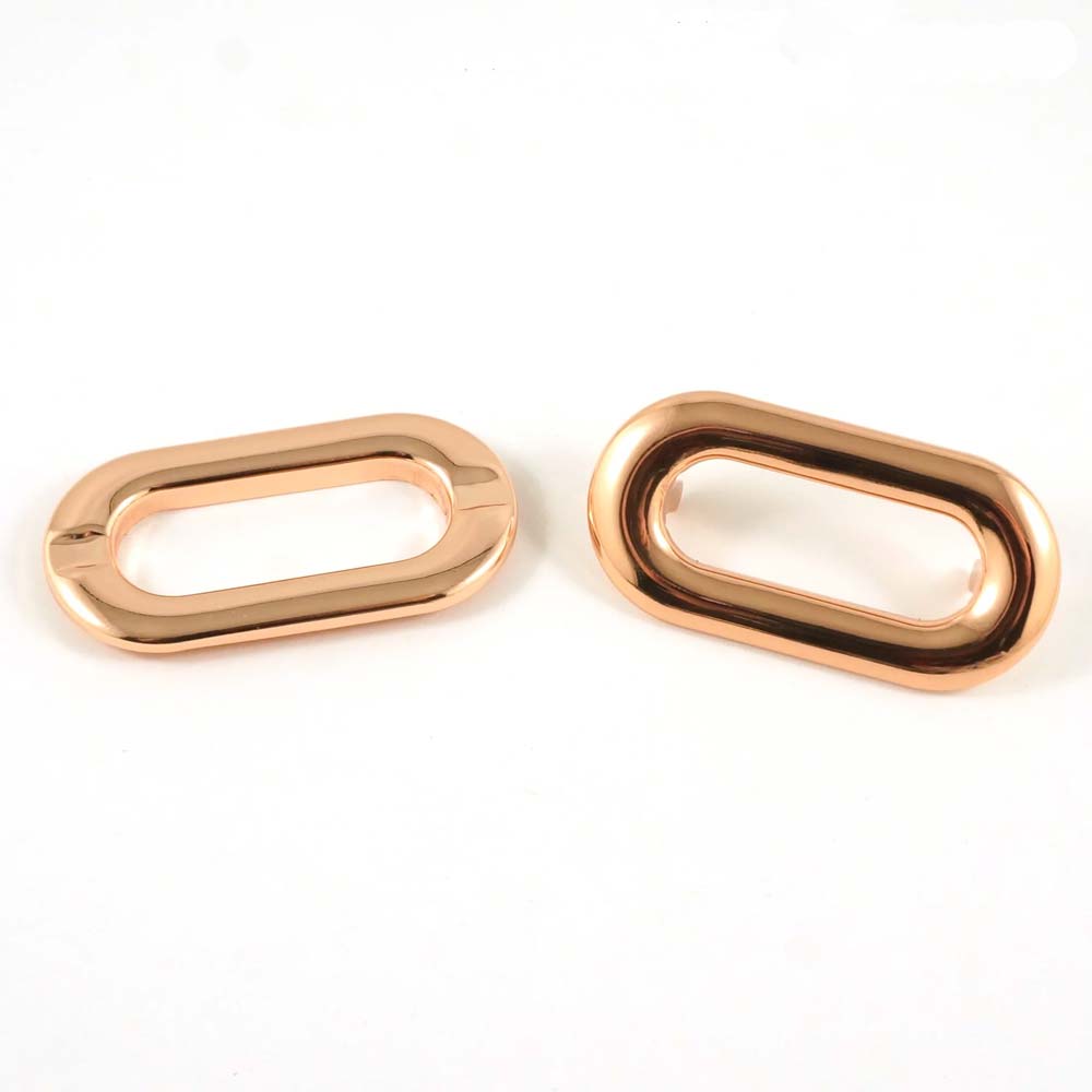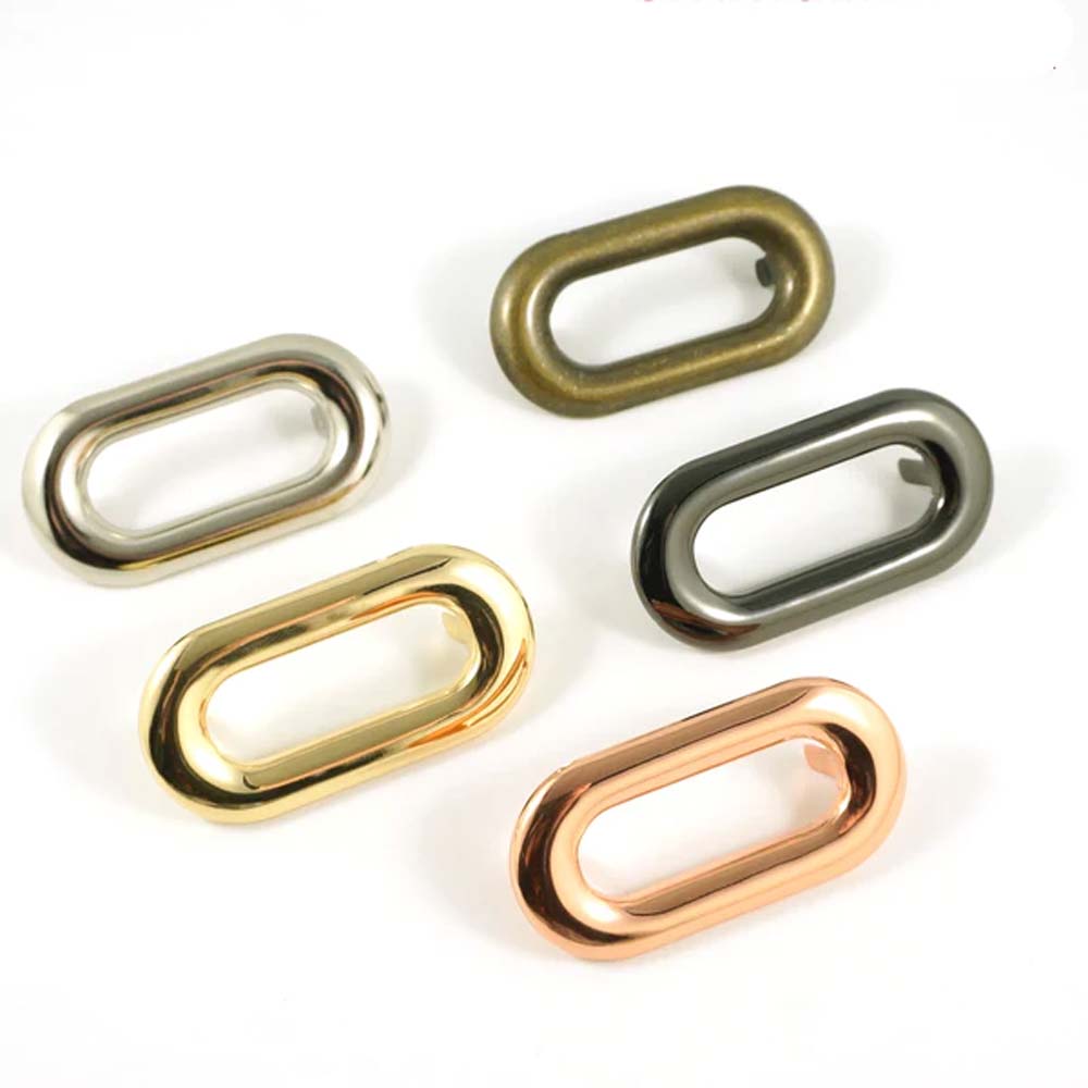 These grommets come with front and back pieces and go together very quickly with two prongs to fold over the back piece. These are fantastic grommets for purse or tote bag straps or decorative belt detail.
