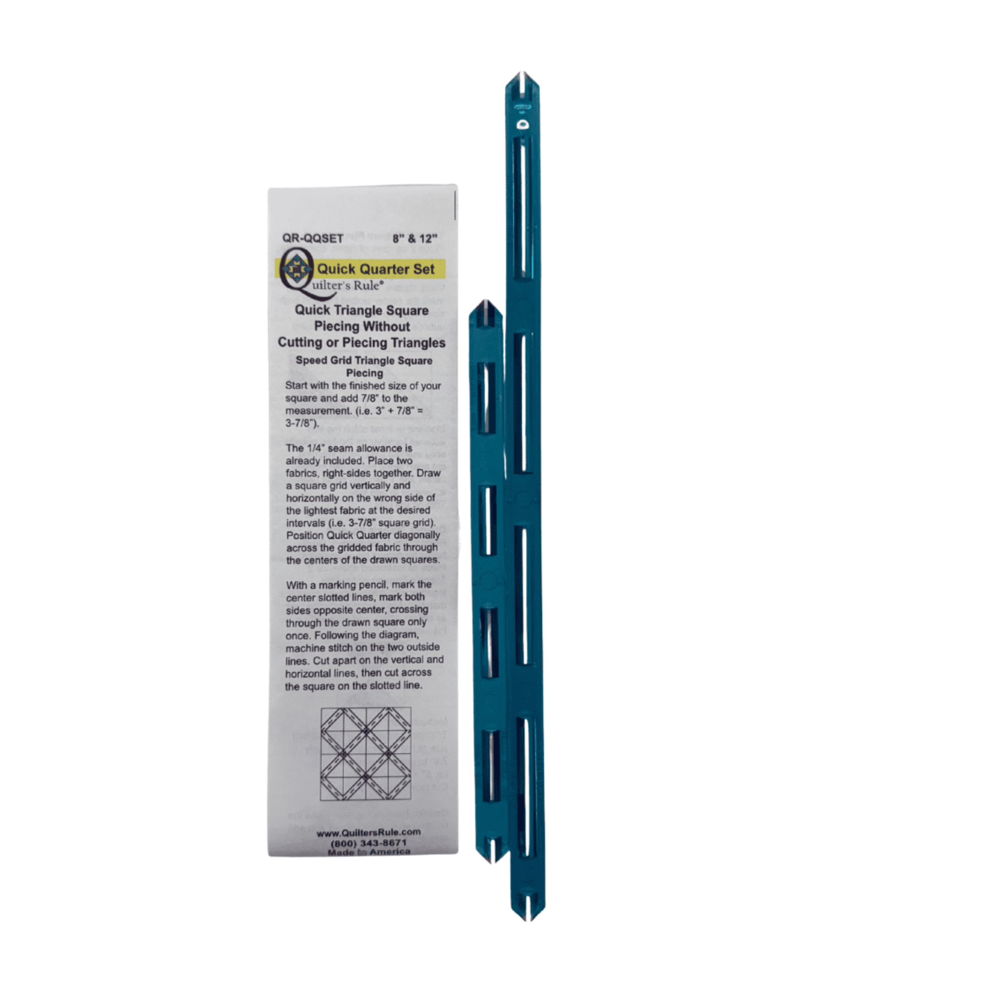 The Quilter's Rule Quick Quarter II is an essential precision tool for accurate quarter-inch seam allowances. Its slotted centre design provides a perfect ¼" guide on either side, making it indispensable for half-square triangles, quarter-square triangles, and Flying Geese blocks.