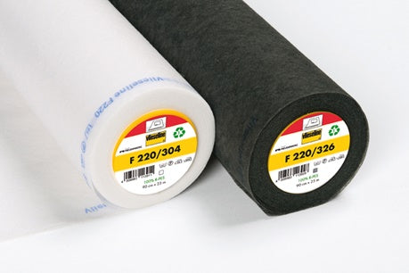 Vlieseline F 220 is a lightweight fusible nonwoven interlining made from synthetic fibres. It is designed for the fusing of small garment parts such as bonnets, trims, collars, waistbands and bows, and is also suitable for home décor items including tiebacks, trims on Roman blinds, pelmets and pillows. This versatile interlining provides firm support while maintaining a smooth handle and is suitable for medium- to heavyweight fabrics.