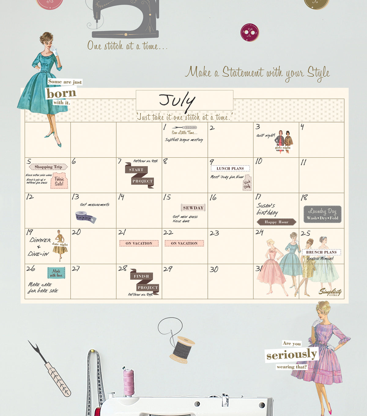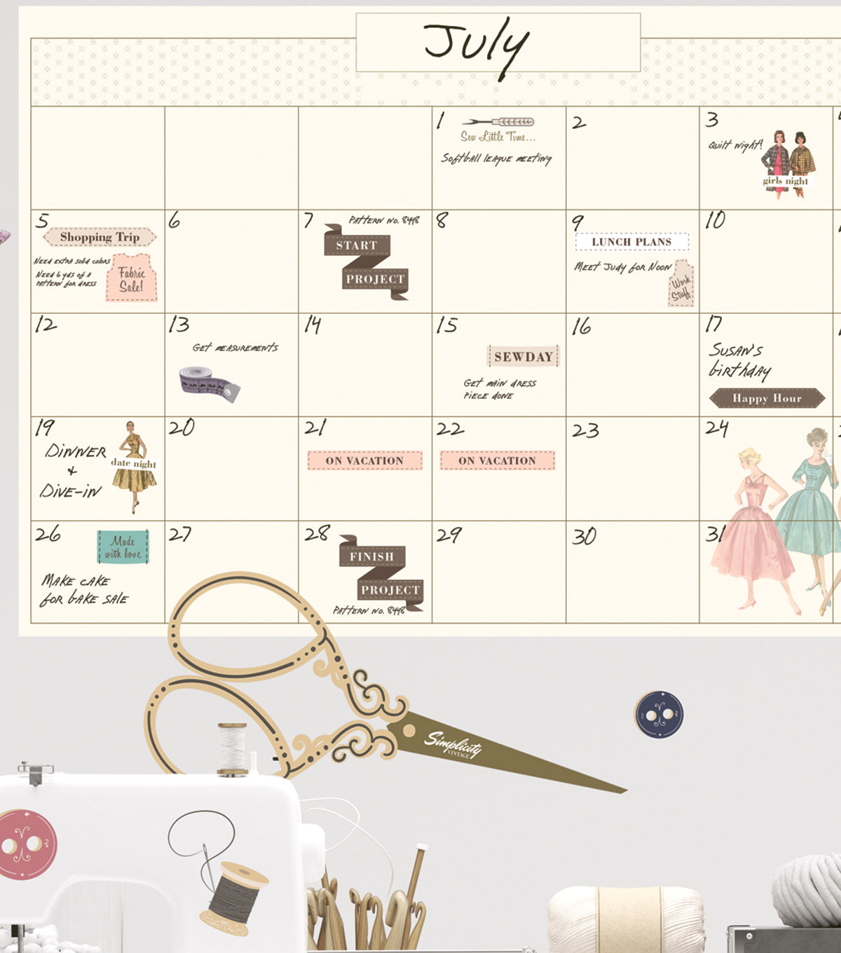 This vintage style wall planner is perfect for your sewing room and speaks to Simplicity's long history in the fashion design industry. Perfect for planning your sewing projects and those most important sewing bee dates.