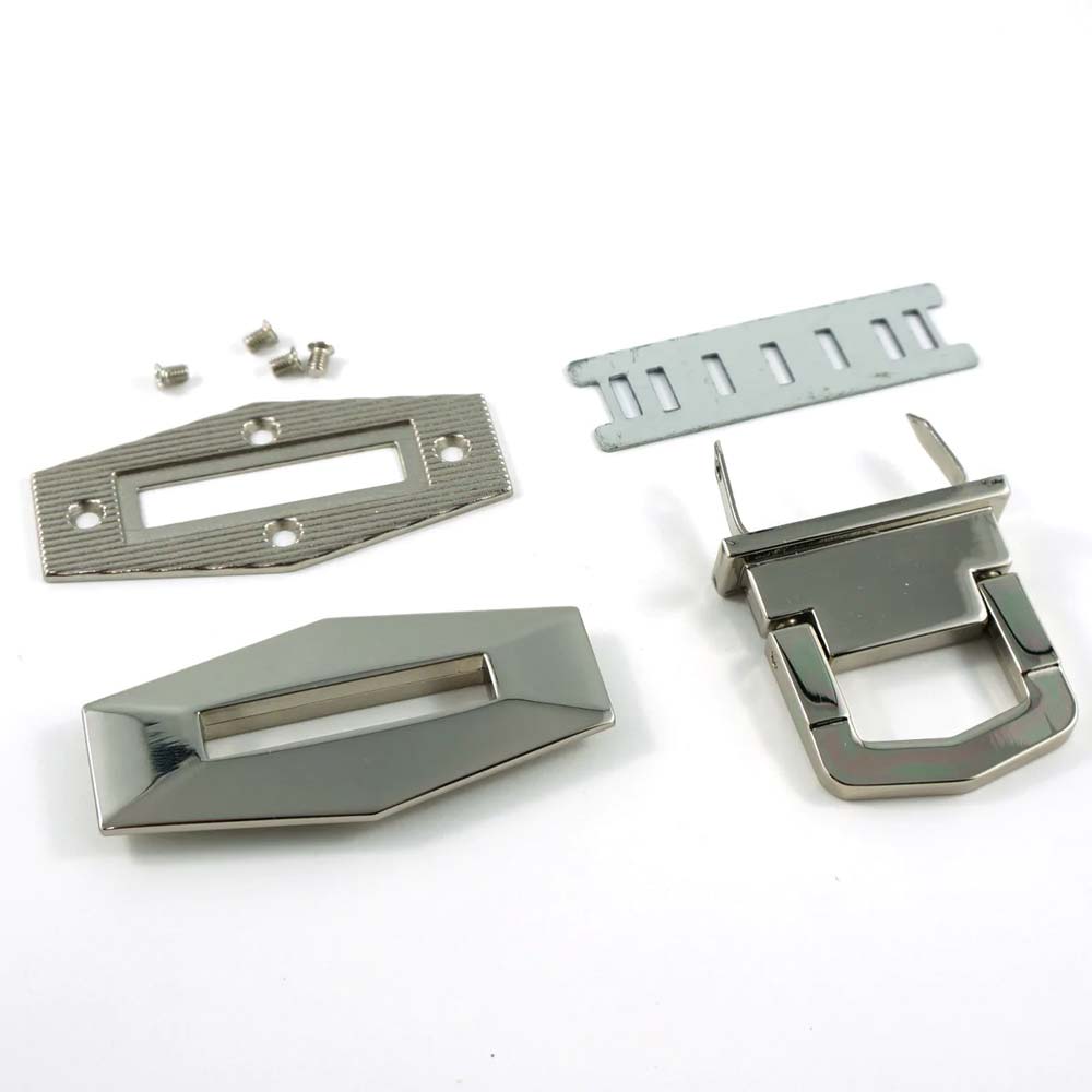 High-quality flip locks are perfect for your purse, suitcase, or clutch. They are perfect on a flap or wide strip over your bag opening, giving it a super professional look. The Quarter Note Clutch was designed especially for this lock!Base Size: Width 2⅛" (55mm) Height: 1" (25mm) Pack of 1