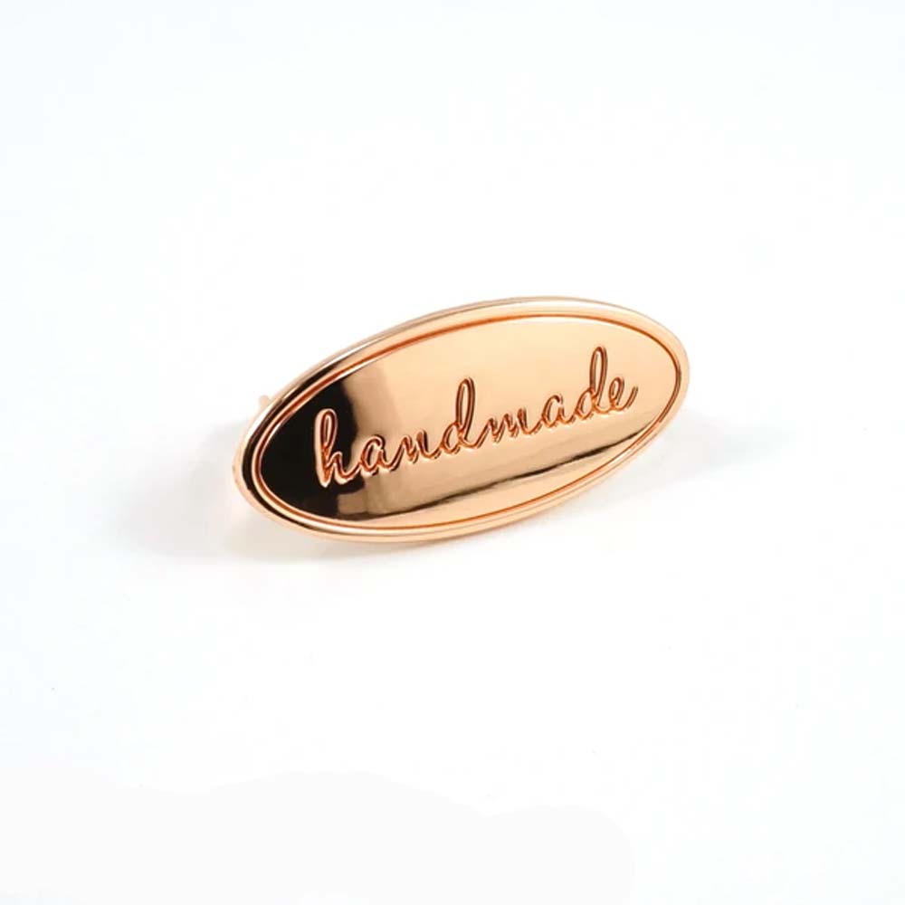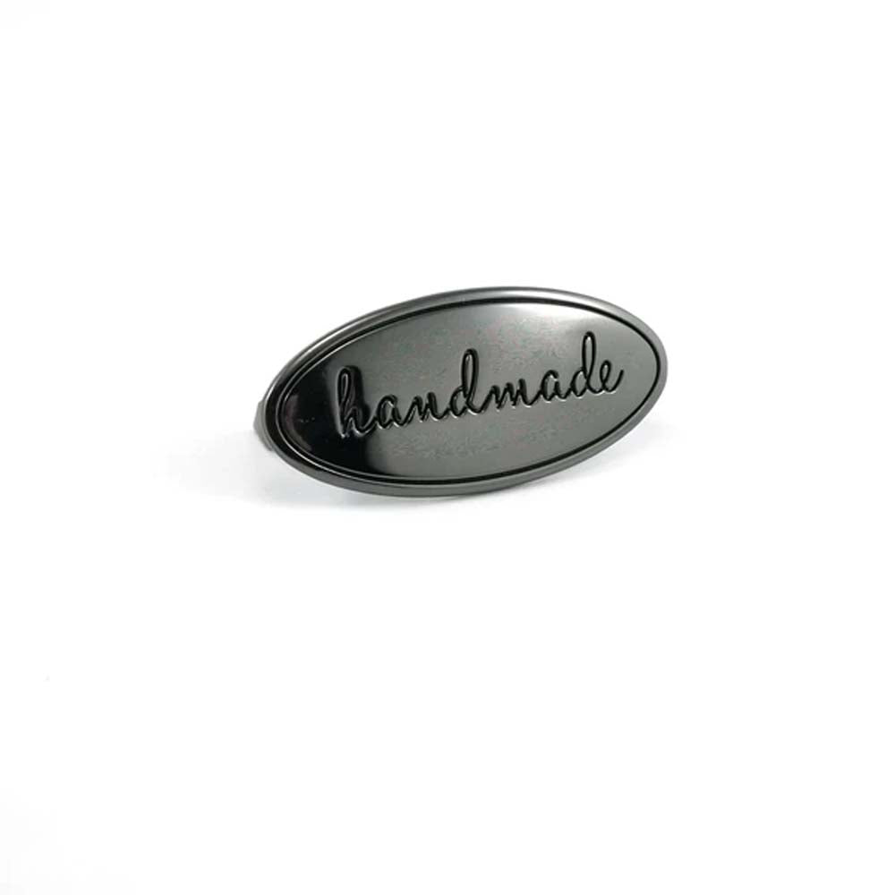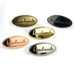 Slightly domed on the front, this oval metal bag label is our favourite thing! It's professional-looking, creates a focal point, and is just PRETTY! The black ink in the lettering and border is easy to see and very striking.