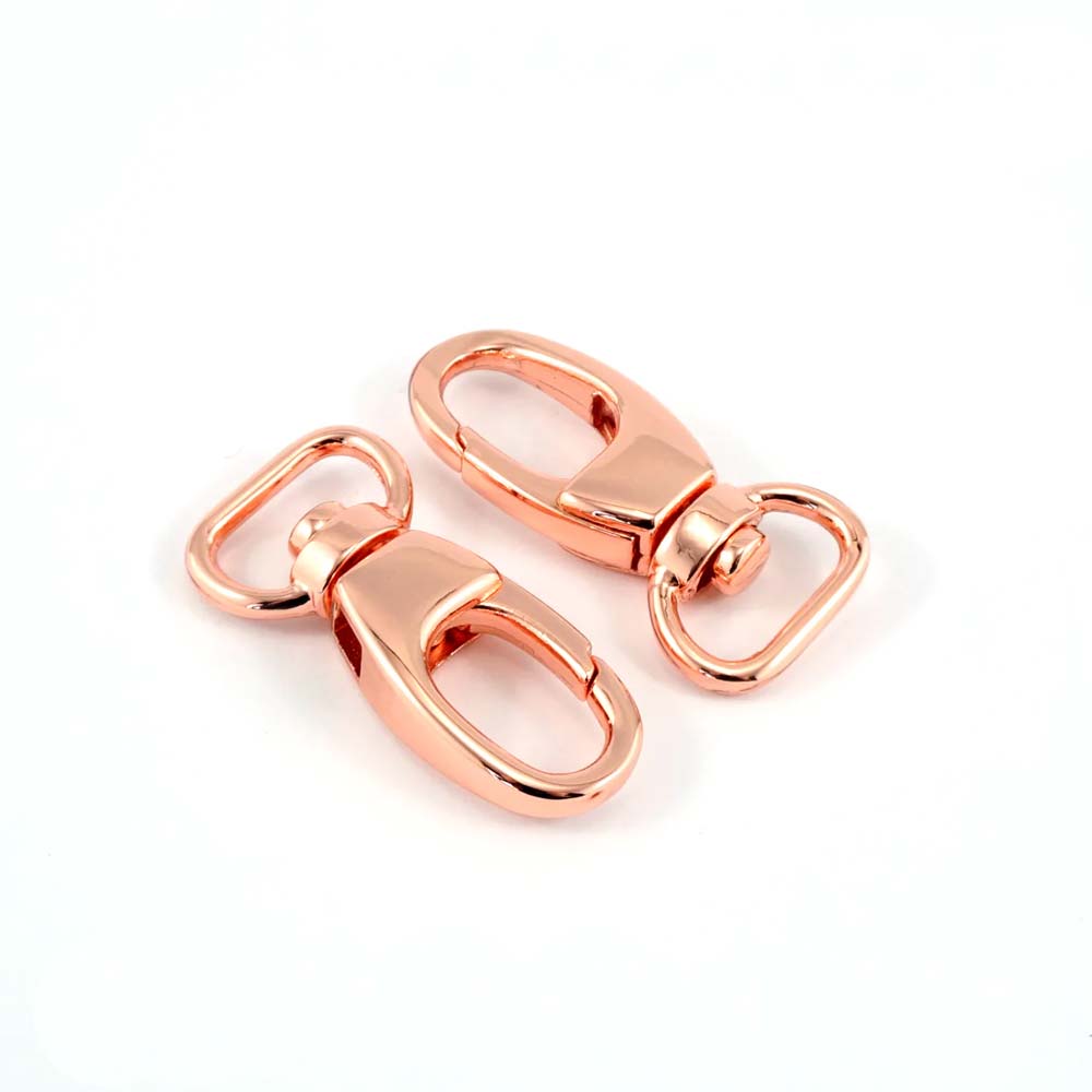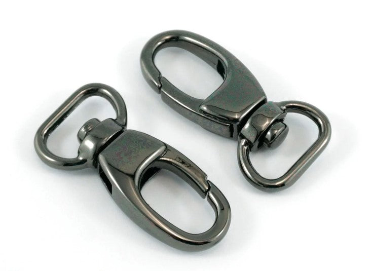 These are our "fashion" designer look swivel snap hooks for your bags and handbags. A very polished look, and a slightly chunkier hook style. Pair with ½" D-Rings for a professional look.